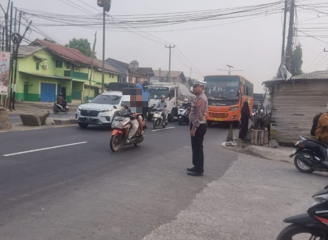 JP Polres Karawang – Panitia Lantas Polsek Jatisari Polres Karawang Aiptu Asep melaksanakan pengaturan lalu lintas pertigaan jalan raya Cikalong Desa Cibalongsari, Kec Jatisari, Kab Karawang, Jawa Barat.