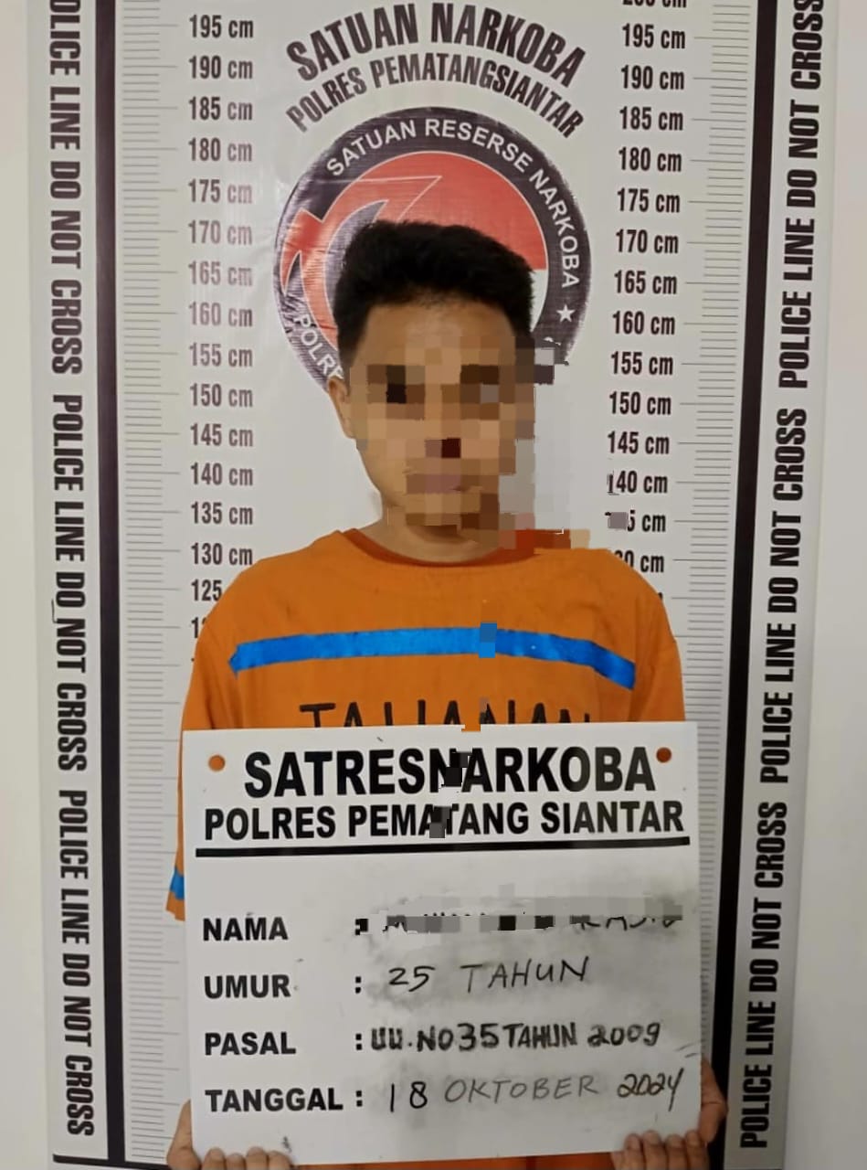 Kapolres Pematangsiantar AKBP Yogen Heroes Baruno SH. SIK melalui Kasat Resnarkoba AKP JH. Pasaribu SH. MH pada hari Minggu 20 Oktober 2024 mengatakan pria itu berinisial MR (25) warga Jalan Pisang Kipas Gg. Amatia Blok 9 Kelurahan Bahsorma Kecamatan Siantar Sitalasari Kota Pematangsiantar.