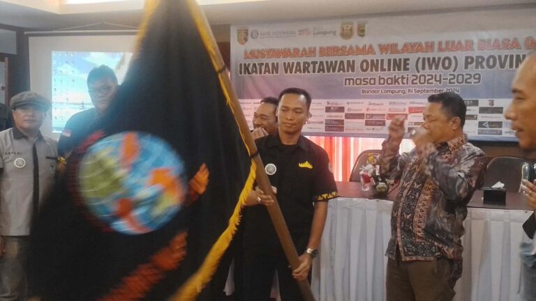 JURNALPOLRI.MY.ID, Lampung – Ketua Umum Pengurus Pusat Ikatan Wartawan Online (IWO), Teuku Yudhistira Adi Nugraha, S.I.Kom, M.I.Kom, mengukuhkan Pengurus Wilayah (PW) IWO Provinsi Lampung untuk masa bakti 2024-2029.