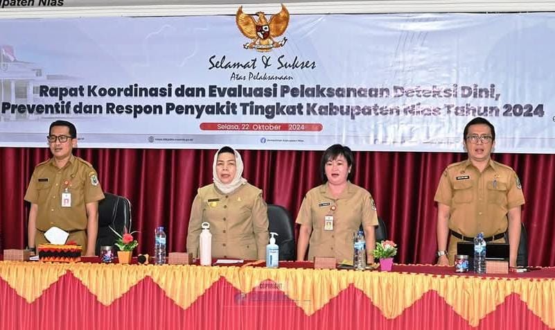 Jurnalpolri.com.| Pjs Bupati Nias, Ir. Yuliani Siregar, M.AP hadiri Rapat Koordinasi dan Evaluasi Pelaksanaan Deteksi Dini, Preventif dan Respon Penyakit Tingkat Kabupaten Nias, bertempat di Ruang Training Centre UPTD RSUD dr. M. Thomsen Nias. Selasa (22/10/2024) Dilansir dari Niaskab.go.id