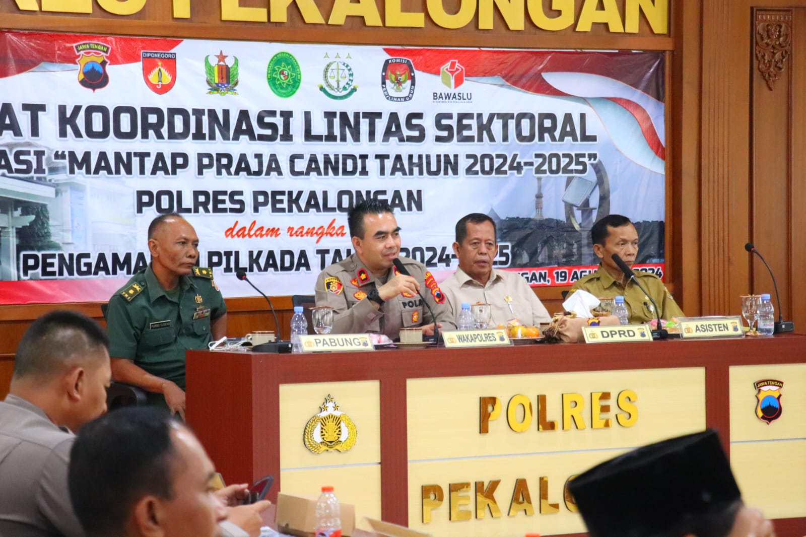 Wakapolres Pekalongan Kompol Kholid Mawardi dalam kesempatan itu menyampaikan, pelaksanaan rapat koordinasi lintas sektoral ini dilaksanakan dalam rangka persiapan pengamanan pelaksanaan Pilkada 2024 Kabupaten Pekalongan.