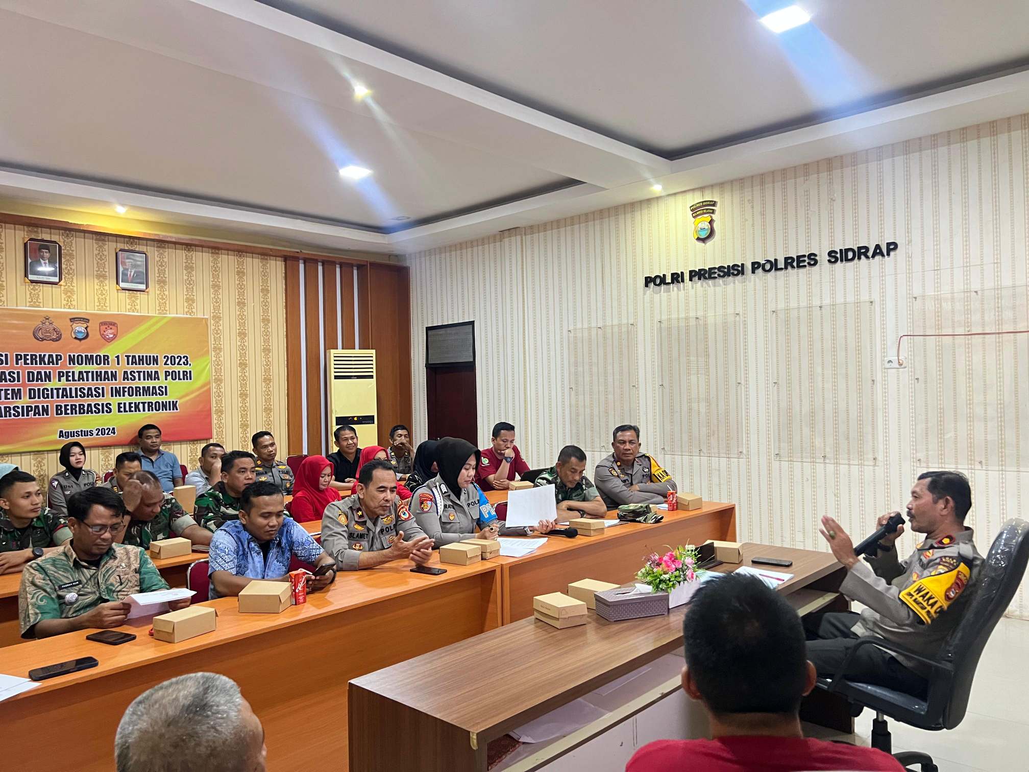 JURNALPOLRI.MY.ID, Sidrap, 9 Agustus 2024 – Di tengah persiapan yang matang, Wakapolres Sidrap, KOMPOL Ahmad Rosma, SH. memimpin rapat koordinasi pemantapan upacara Hari Ulang Tahun ke-79 Republik Indonesia yang akan digelar di Kabupaten Sidrap. Rapat yang berlangsung di Ruang Vicon Polres Sidrap ini melibatkan berbagai instansi terkait, termasuk TNI, Satpol PP, Dinas Perhubungan, dan pihak-pihak lain yang terlibat langsung dalam perhelatan akbar ini.