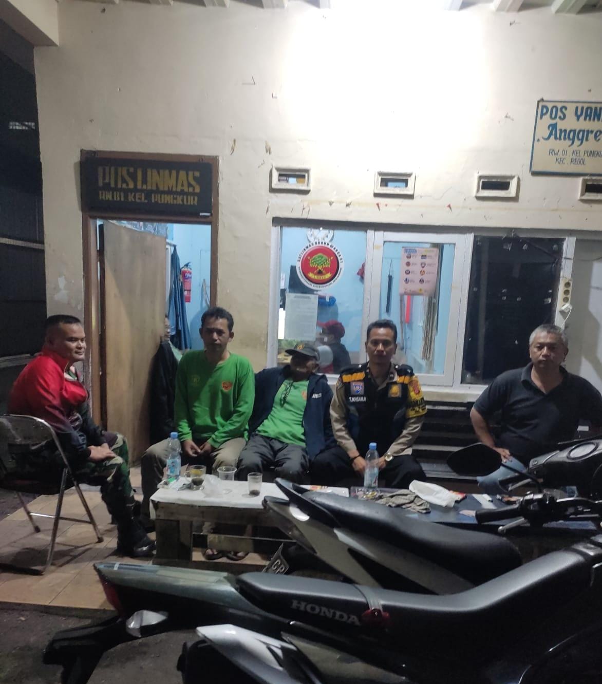 Bhabinkamtibmas Aipda Tri menyampaikan Himbauan kamtibmas dan meminta agar berperan aktif anggota Perlindungan Masyarakat “Linmas” dalam menjaga keamanan wilayahnya serta laksana pengontrolan dan Patroli sekitar wilayah RW.01 Kelurahan Pungkur untuk memberikan Rasa aman bagi warga masyarakat.