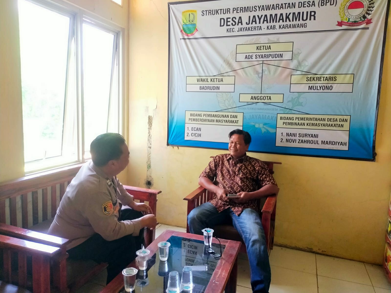 Dalam kegiatan sambang tersebut Bhabinkamtibmas Desa Jayamakmur Aiptu Nuryana menyampaikan pesan pesan Kamtibmas kepada aparat desa binaan kaur trantib desa Jayamakmur Kec. Jayakerta agar tidak mudah terprovokasi dengan berita hoax.