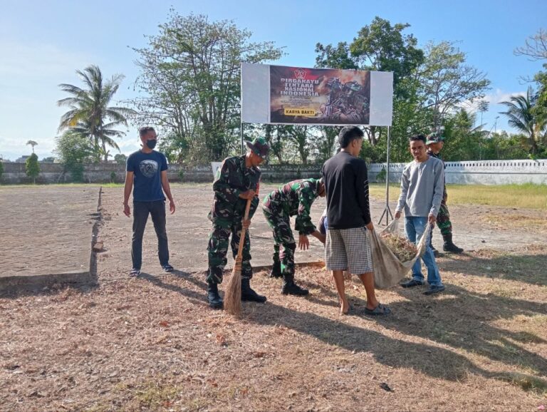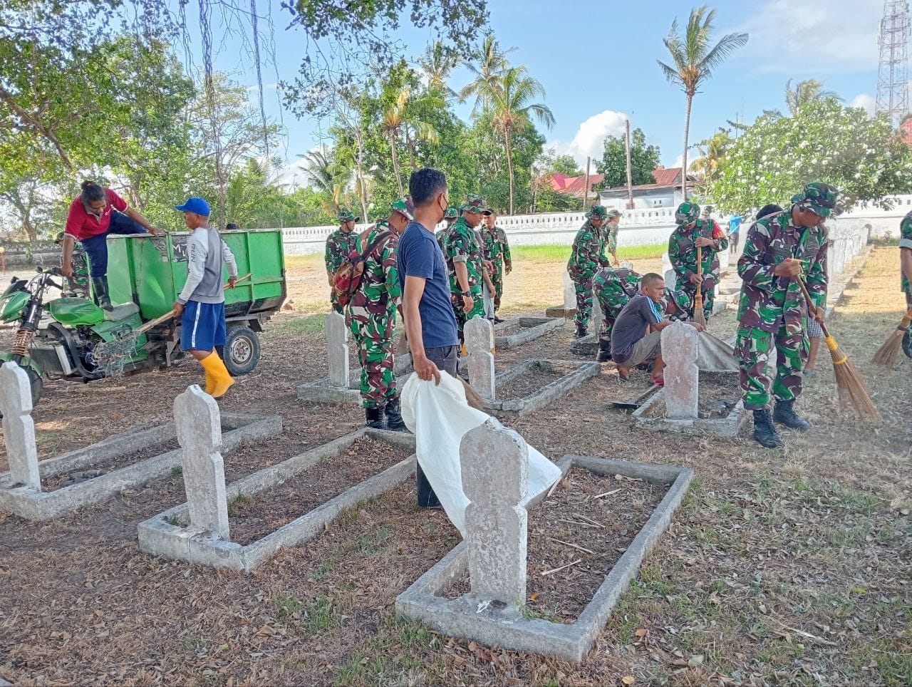 Personel Kodim 1426/Takalar melakukan kegiatan gotong-royong dengan sasaran pembersihan di areal dalam TMP, membersihkan daun-daun kering, membersihkan rumput-rumput liar yang mengganggu pemandangan dan membakar sampah-sampah yang sudah dikumpulkan selama kegiatan kerja bakti.