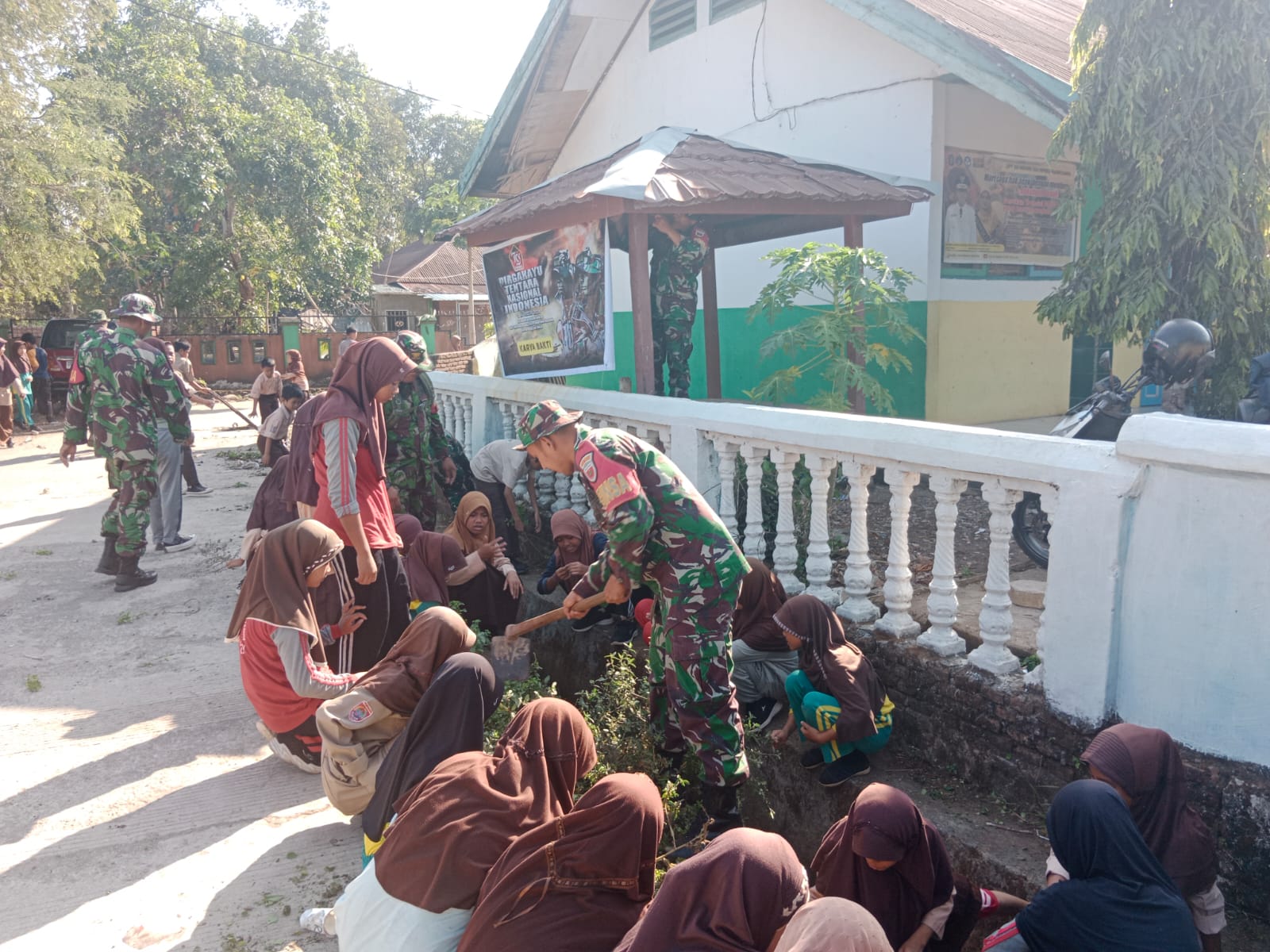 Kapten Inf Ashar, S.Pd Danramil 1426-01/Polut menyampaikan kegiatan ini bertujuan untuk mengajarkan peduli kebersihan sejak dini dan mempererat hubungan tali silaturahmi dan memperkokoh kemanunggalan TNI dengan para Guru dan Siswa SD, “ungkap Danramil.