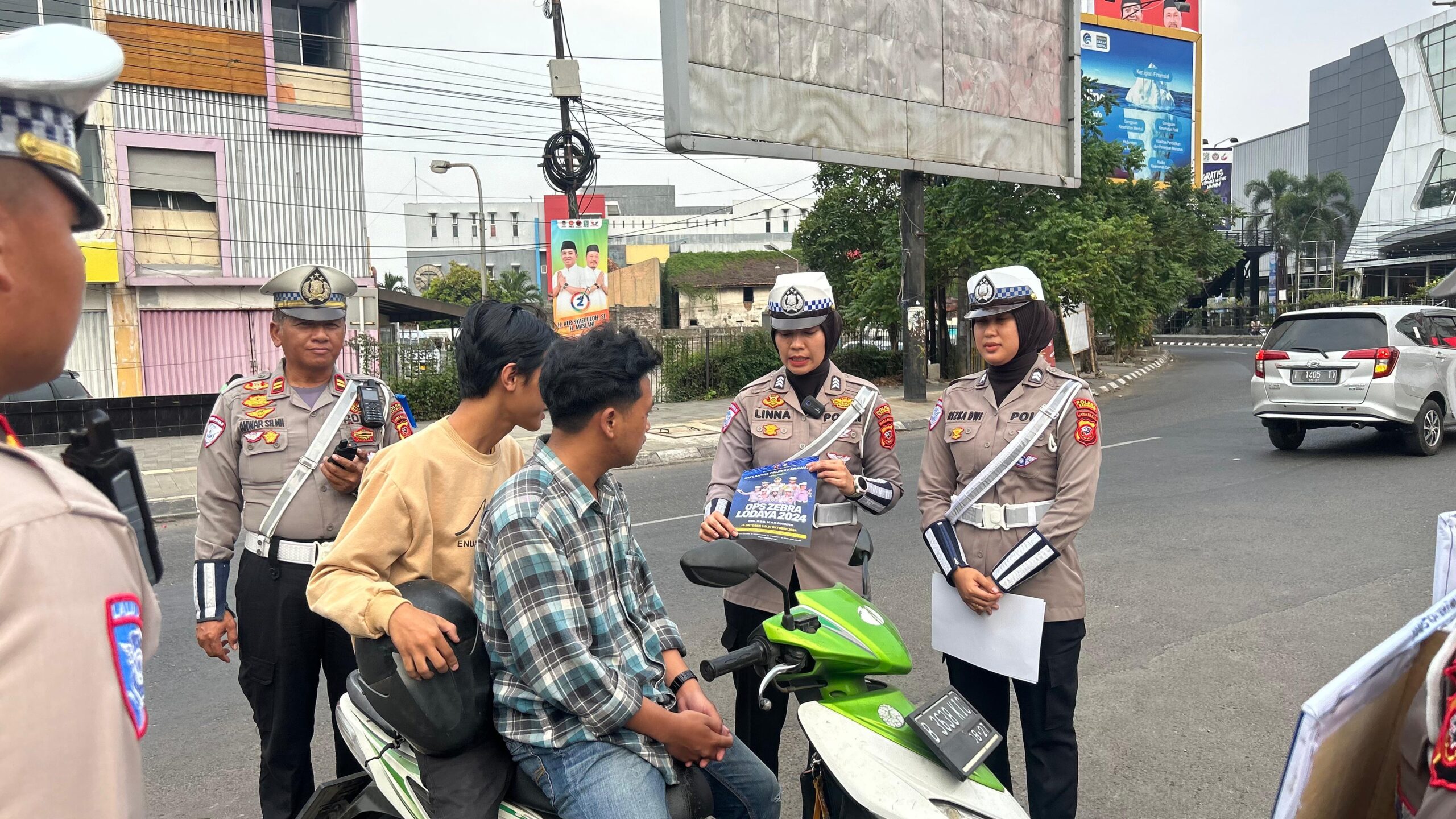 Sat Lantas Polres Karawang Bagikan Stiker di Hari Ketiga Operasi Zebra Lodaya
