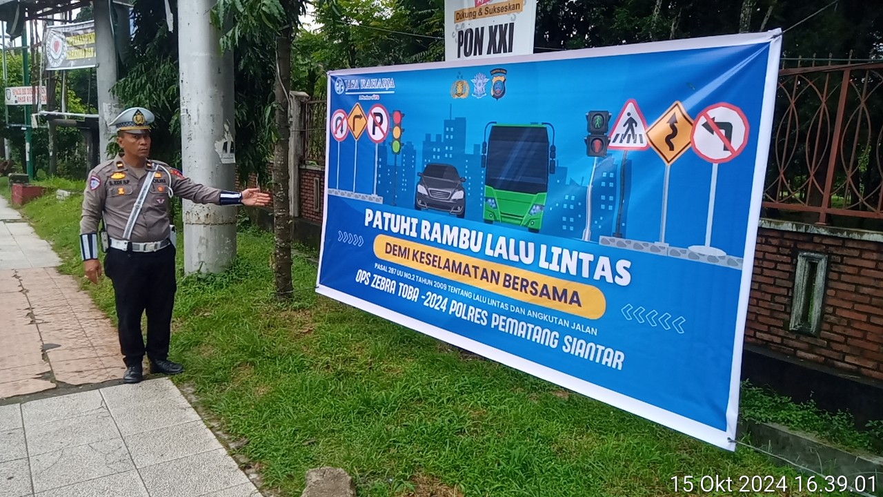 Sat Lantas Polres Pematangsiantar Pemasangan Spanduk Himbauan Tertib Berlalulintas Dalam Rangka Operasi Zebra Toba Tahun 2024