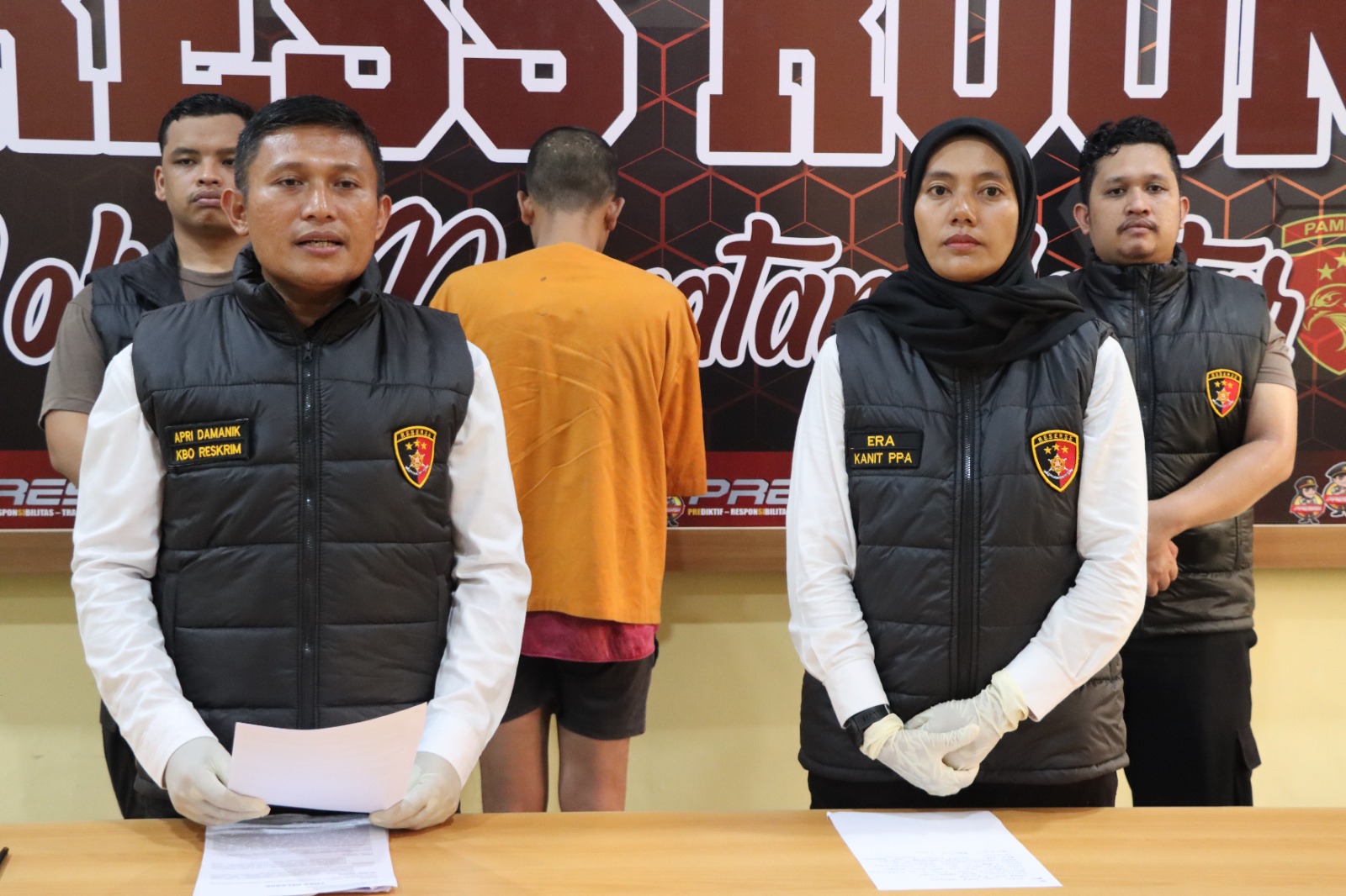 Dalam Press release nya KBO Sat Reskrim IPTU Apri Damanik, SH mengatakan Polres Pematangsiantar Melalui Satuan Reskrim Berhasil melakukan penangkapan terhadap tersangka pencabulan berinisial MS alias R alias B (27) warga Jalan Rangkutta Sembiring Kelurahan Naga Pita Kecamatan Martoba Kota Pematangsiantar.