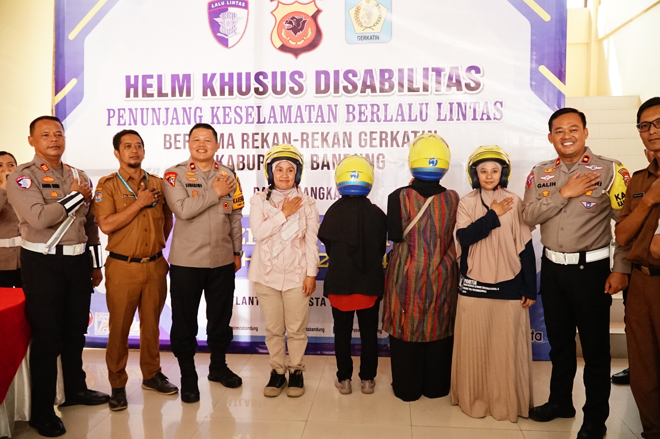 Satlantas Polresta Bandung Bagikan Helm Inklusif untuk Pengendara Disabilitas dalam Operasi Zebra Lodaya