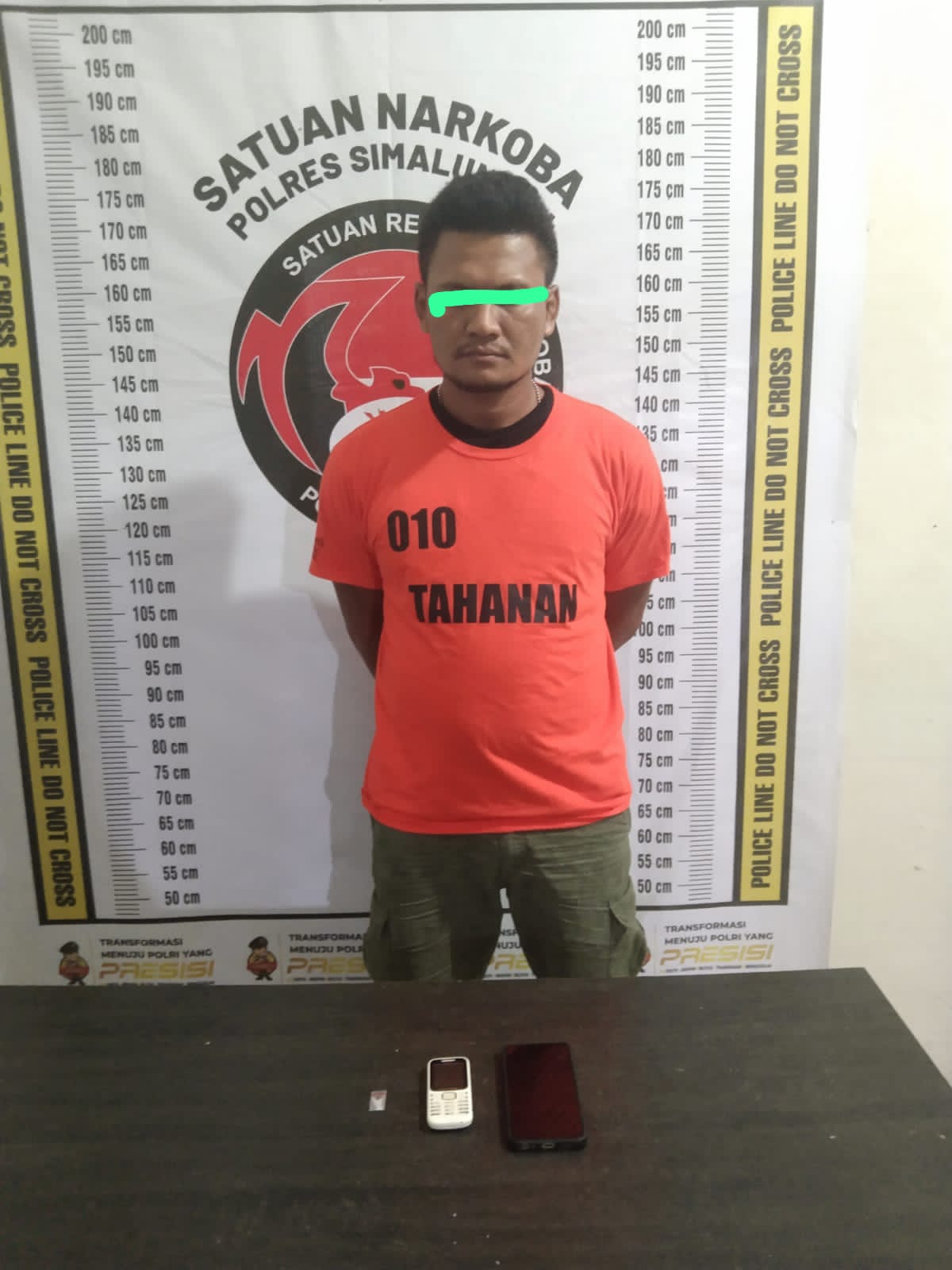 Pelaku yang diamankan adalah Suriadi Tian alias Suriadi, pria berusia 38 tahun yang berdomisili di Huta Purwosari Atas, Kelurahan Dolok Mainu, Kecamatan Dolok Batu Nanggar, Kabupaten Simalungun. Barang bukti yang disita berupa satu bungkus plastik klip kecil berisi narkotika jenis sabu seberat 0.16 gram dan satu unit handphone merk Vivo berwarna hitam.