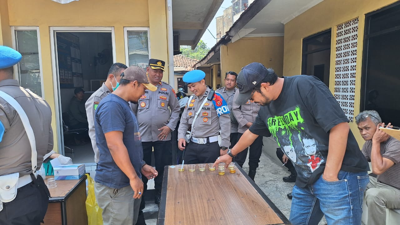 Kegiatan tes urine berlangsung di Mapolsek Dayeuhkolot, Polresta Bandung jalan Moh Toha No.109 Dayeuhkolot Kabupaten Bandung, Rabu, (21/8/2024)