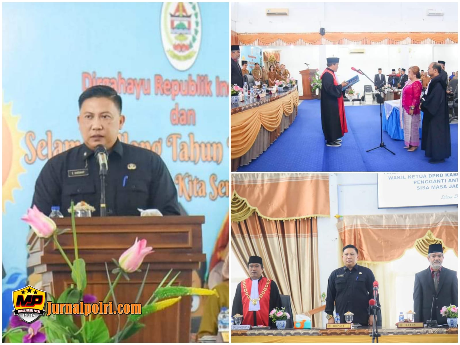 Jurnalpolri.com | PANDAN – Sekretaris Daerah Kabupaten (Sekdakab) Tapanuli Tengah (Tapteng), Dr. Erwin Hotmansah Harahap, S.STP, MM, menghadiri Rapat Paripurna Istimewa Peresmian Pengangkatan dan Pengucapan Sumpah/Janji Pelantikan Wakil Ketua DPRD Tapteng Pengganti Antar Waktu (PAW), Sisa Masa Jabatan 2020-2025, Camelia Neneng Susanty S.Kom, bertempat di Ruang Rapat DPRD Tapteng, Selasa (14/9/2024).