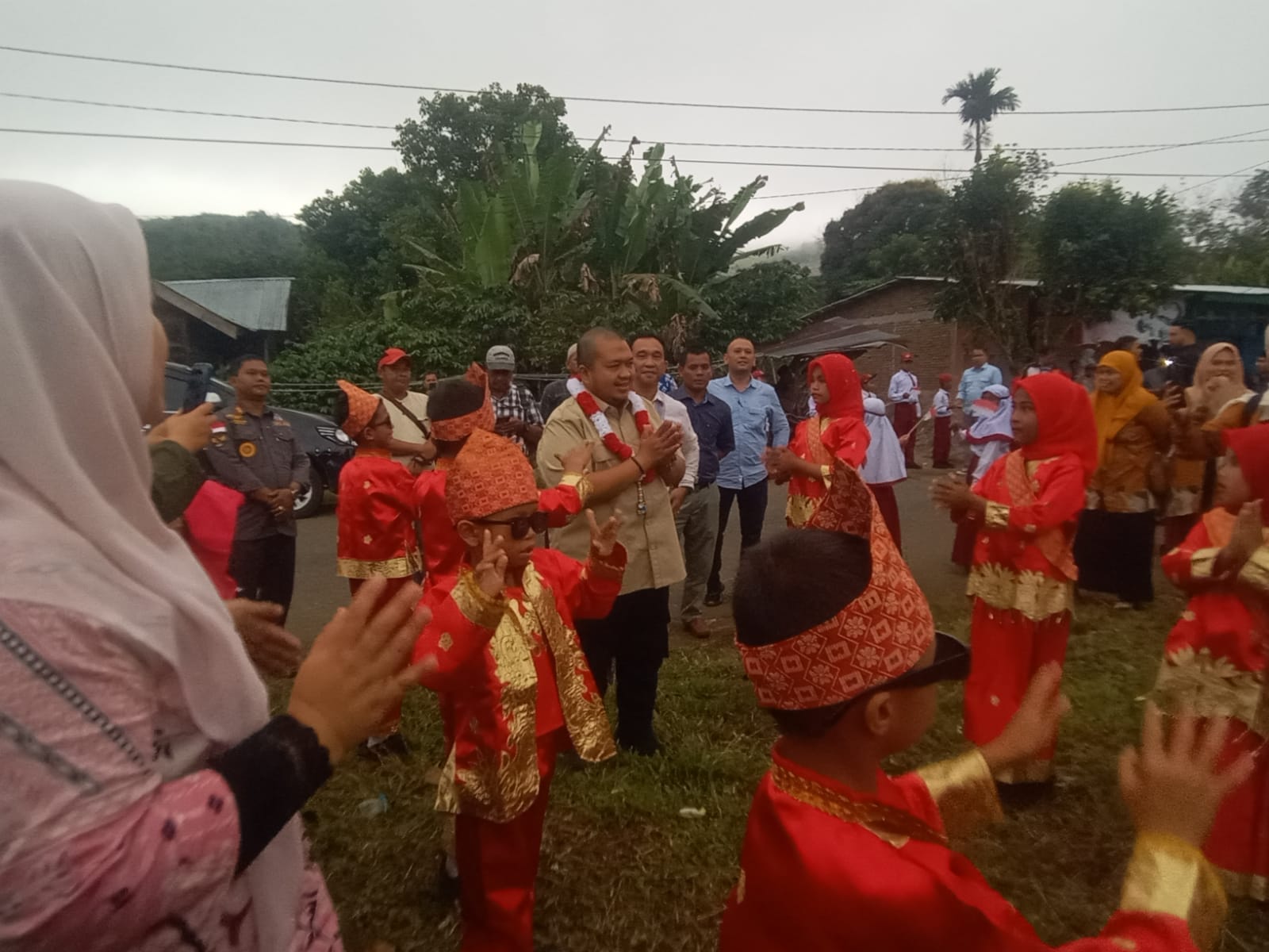 JP. Tapsel Angkola Timur // Kedatangan Bupati Tapanuli Selatan H.Dolly pasaribu Sp.t.mm di dampingi Sekretaris Asosiasi kepala desa seluruh Indonesia ( AKSI )ke desa pargarutan Dolok Dusun Tapus di sambut dengan tarian oleh anak sekolah dasar juga ratusan masyarakat di sore hari pada kamis 12/9/24.