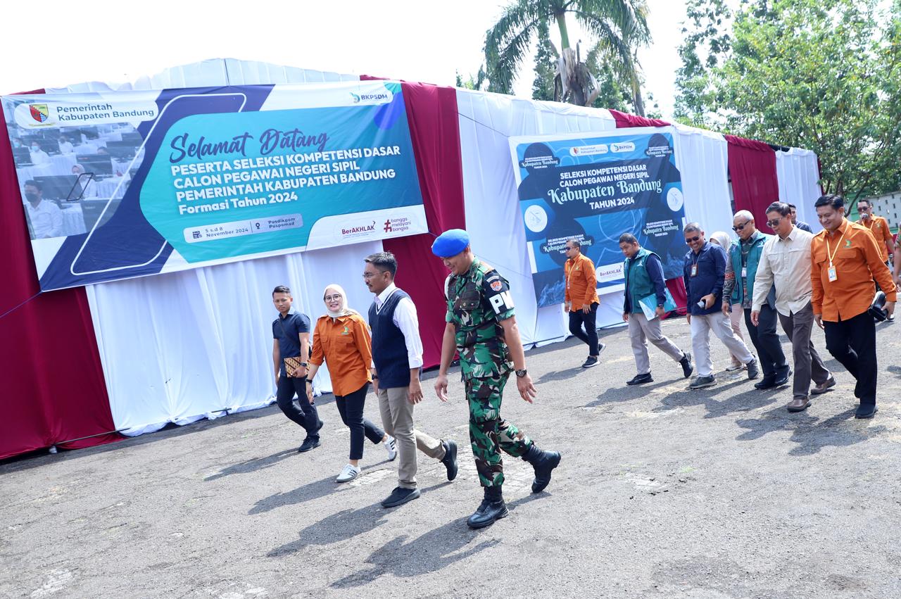 KAB. BANDUNG – Jurnalpolri – Pjs. Bupati Bandung Dikky Achmad Sidik melaksanakan pemantauan dan monitoring Seleksi Kompetensi Dasar Calon Pegawai Negeri Sipil (SKD CPNS) Formasi Tahun 2024 di Pusdikpom Puspom Cimahi, Selasa (5/11/2024).