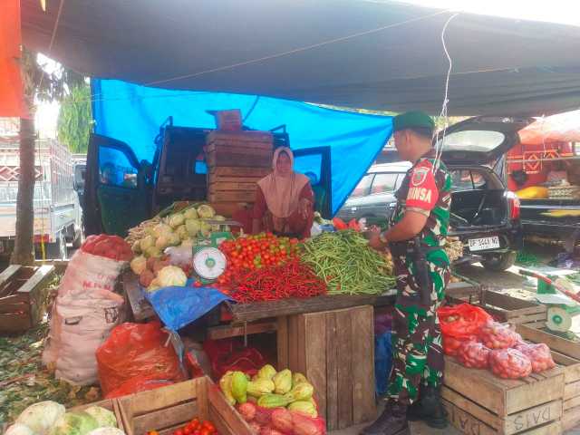“Kami terus berkoordinasi dengan pedagang dan pihak terkait untuk memastikan stok barang cukup dan harga stabil. Ini penting agar masyarakat tidak kesulitan memenuhi kebutuhan sehari-hari,” tegas Sertu Alimuddin.