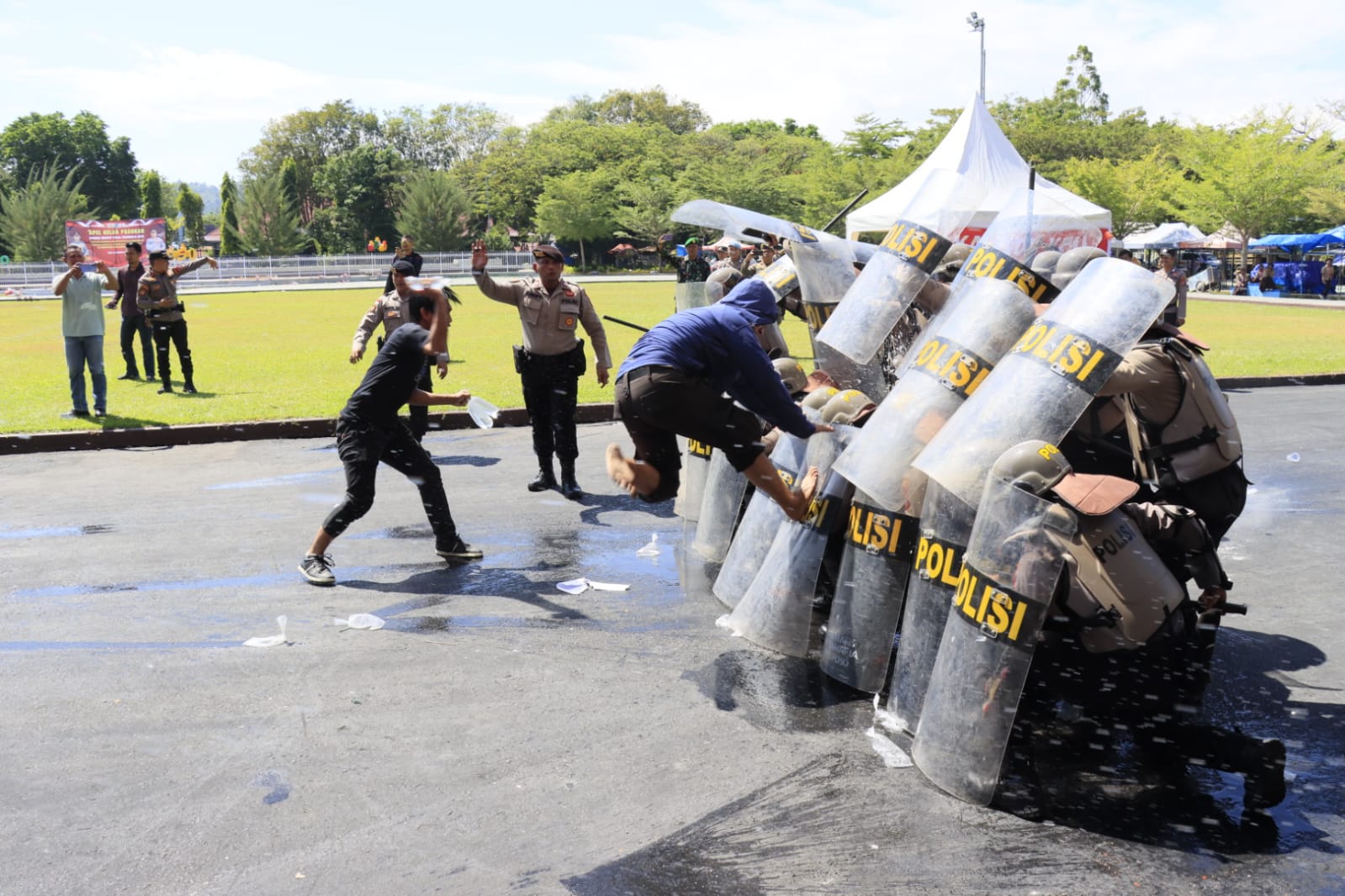 JP. Poso – Polres Poso Sulawesi Tengah menggelar Simulasi Sistem Pengamanan Kota (Sispamkota) dalam rangka Pengamanan Pilkada Serentak 2024 bertempat di Lapangan Sintuwu Maroso (Alun-alun Kota Poso), Kelurahan Gebangrejo Timur Kecamatan Poso Kota Kabupaten Poso, Rabu(21/08/2024).