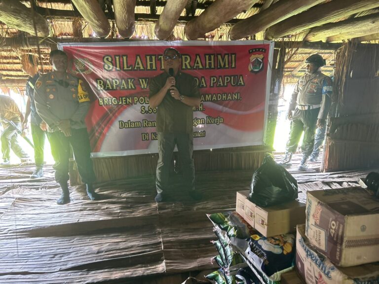 Papua – Dalam rangka Jumat berkah, Wakapolda Papua, Brigjen Pol. DR. Faisal Ramadhani, S.Sos., S.I.K., M.H., melakukan kunjungan serta silaturahmi dengan masyarakat Kampung Syuru, Kampung Kaye, dan Kampung Aswetsy, Distrik Agats, Kabupaten Asmat, Provinsi Papua Selatan, (11/09/2024).