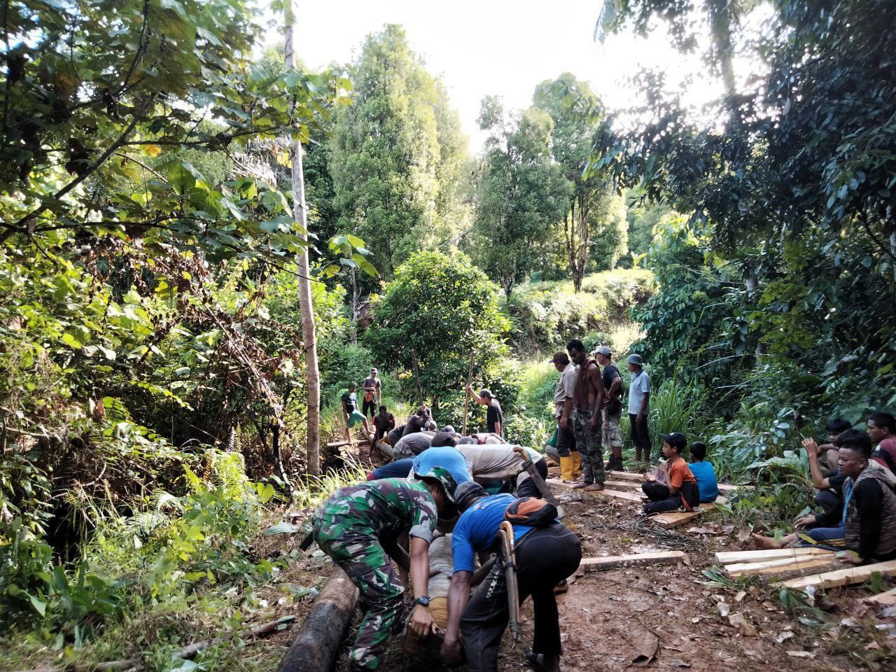 Babinsa Desa Leppangen Kopda Irwan di sela kegiatan tersebut mengatakan bahwa gotong royong bersama warga hari ini yakni pembuatan jembatan darurat dengan menggunakan tiang kayu, yang mana jembatan tersebut sebagai sarana alternatif aktifitas lalu lintas pengguna jalan dikarenakan akses jalan terputus dan merupakan jalur pendekat.