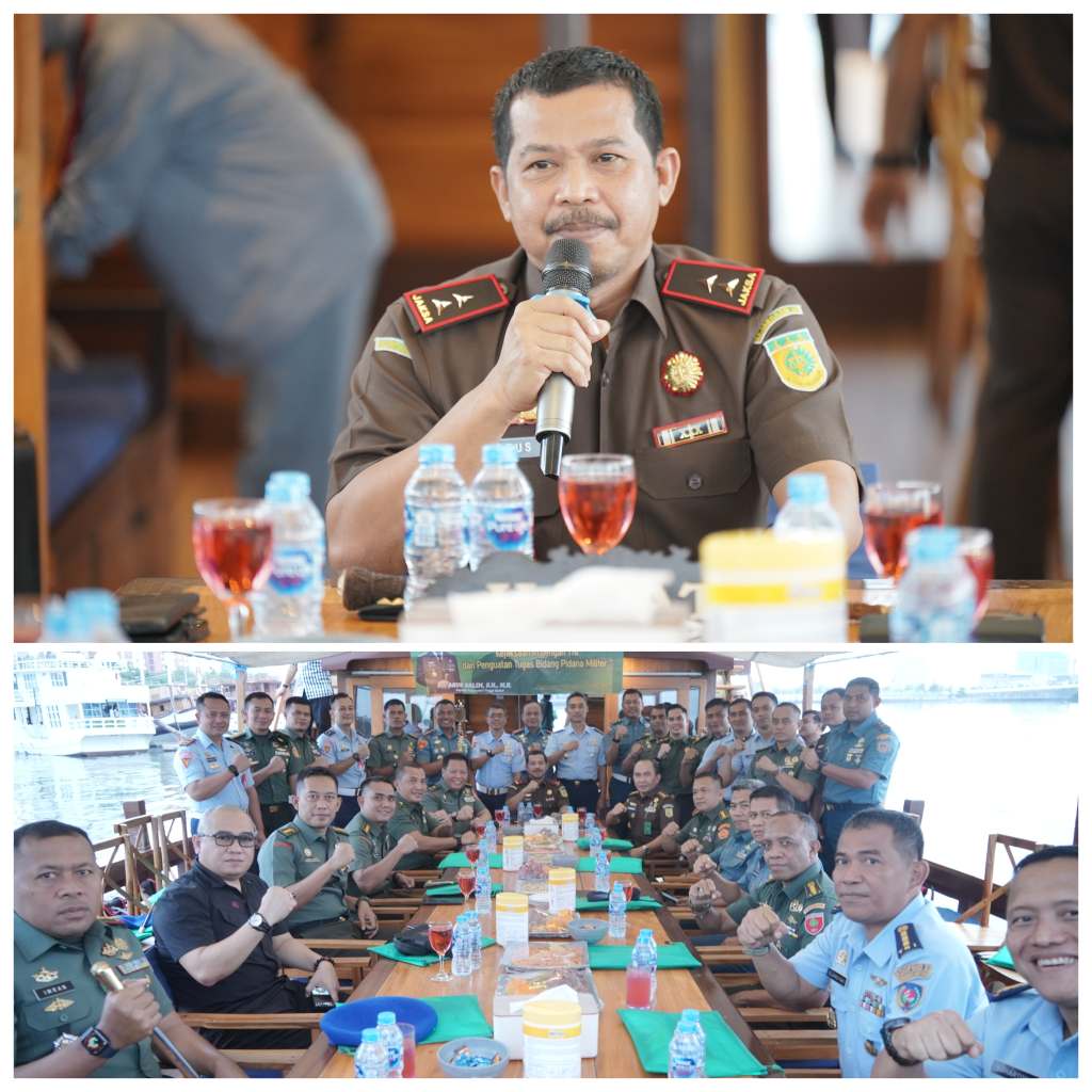 JURNALPOLRI.MY.ID, Makassar – Suasana berbeda terasa di atas kapal kayu Phinisi Makassar pada hari Selasa, 2 Juli 2024. Kepala Kejaksaan Tinggi Sulawesi Selatan, Agus Salim, S.H., M.H., memimpin diskusi santai membahas sosialisasi Nota Kesepahaman antara Kejaksaan RI dengan TNI terkait koordinasi bidang pidana militer.