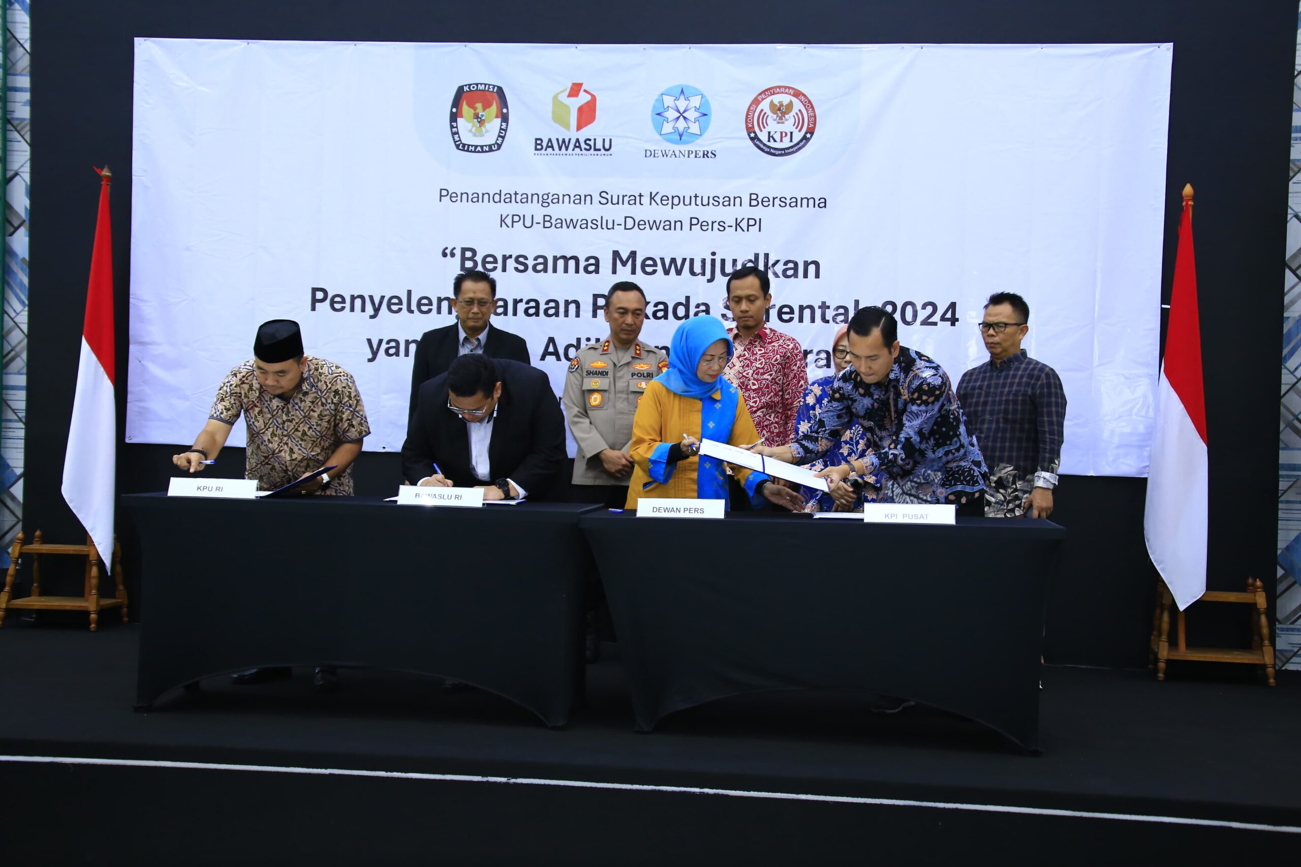 JP. Jakarta. Kadivhumas Polri Irjen. Pol. Sandi Nugroho menghadiri penandatanganan Surat Keputusan Bersama (SKB) KPU, Bawaslu, KPI, dan Dewan Pers. SKB tersebut mengenai pembentukan Gugus Tugas Pemantauan Pemberitaan Pilkada 2024.