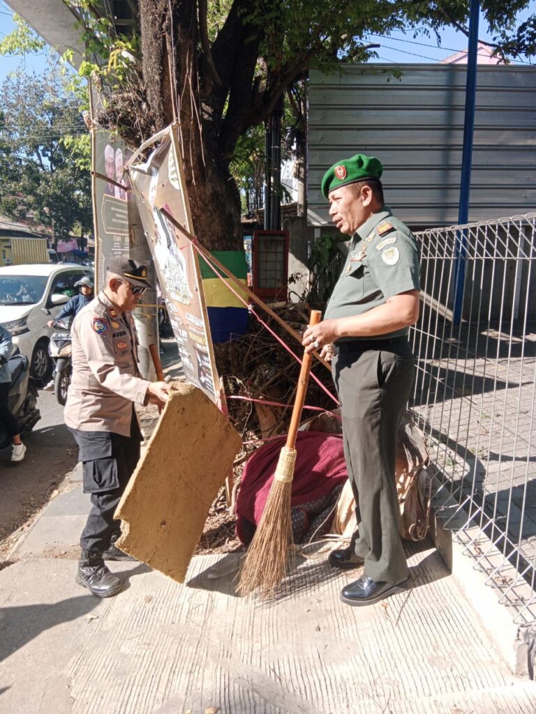 JP.Polrestabes Bandung Polda Jabar Polsek Bojongloa kidul Forcopimcam Bojongloa kidul Melaksanakan kegiatan Beberesih di Wilayah Kec Bojongloa Kidul Kota Bandung dalam Rangka Hari jadi kota Bandung ke 214 Tahun