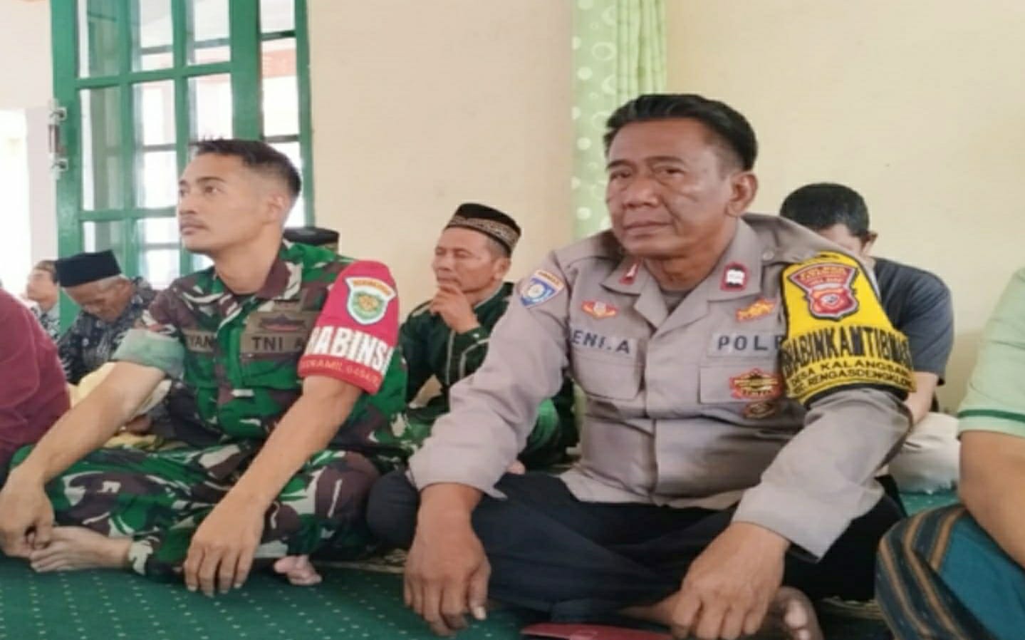 Seperti terlihat saat anggota Babinsa Desa Kalangsari Kopda TNI Aryanto dan anggota Bhabinkamtibmas Polri Aiptu Deni Awaludin melaksanakan ibadah shalat dzuhur bersama tokoh agama desa Kalangsari di masdjid Jamiyatul Islam Dusun Sinarsari