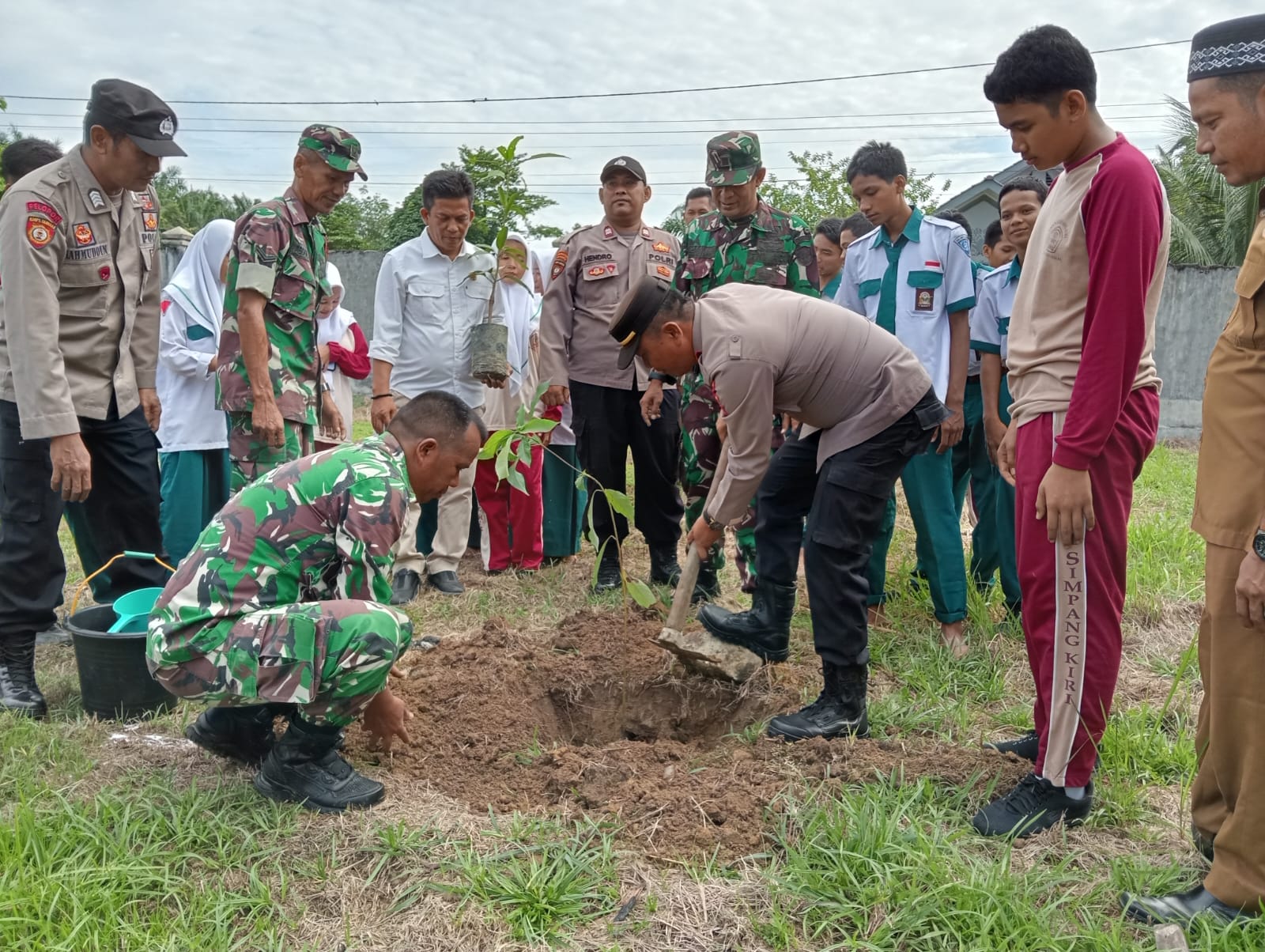 JURNAL POLRI.COM-SUBULUSSALAM-ACEH-Personel Polsek Simpang Kiri Polres Subulussalam dan Koramil 01 Simpang Kiri Kodim 0118 Subulussalam melaksanakan penanaman pohon bersama guru dan siswa-siswi di Sekolah SMK Negeri 1 Subulussalam, Desa Subulussalam Barat Kecamatan Simpang Kiri Kota Subulussalam, Selasa, 10 September 2024.
