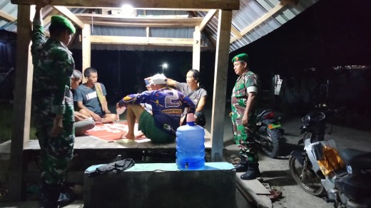 Selain itu, Serka Mustakin dan Sertu Sahabuddin aktif mendatangi lokasi Pos Keamanan Lingkungan (Pos Kamling) yang sedang dijaga oleh warga.