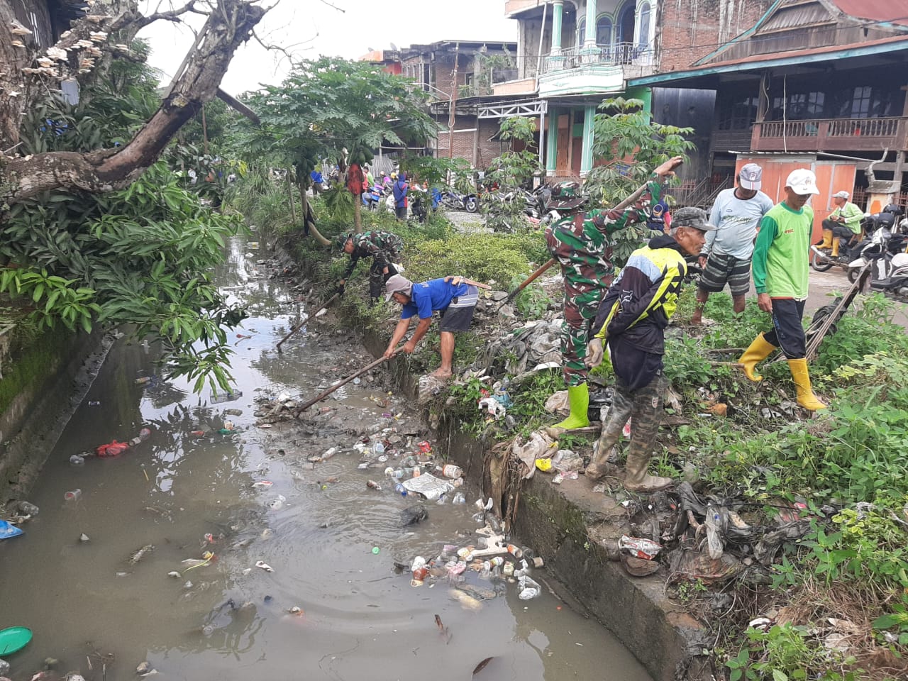 Pada Rabu, 12 Juni 2024, semangat gotong royong kembali terlihat di Lingkungan 1, Kelurahan Tanru Tedong, Kecamatan Dua Pitue, Kabupaten Sidrap. Ws. Danramil 1420-05/Dua Pitue Letda Inf Murjalil beserta anggota Koramil dan warga setempat melaksanakan kegiatan bersih-bersih saluran air. Kegiatan ini dilakukan untuk mengantisipasi banjir saat musim hujan serta mencegah penyebaran penyakit akibat lingkungan yang kotor.