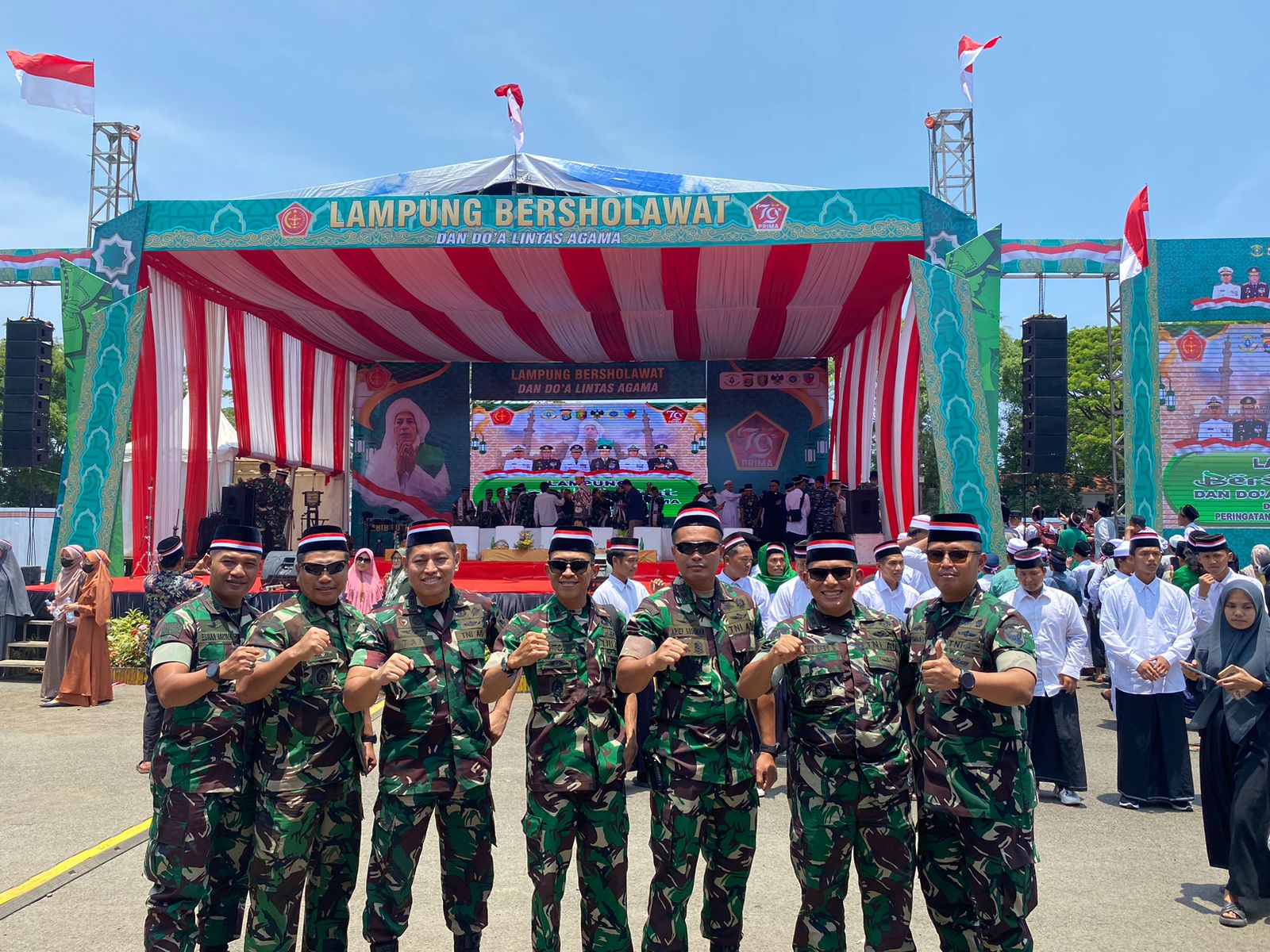 Bertemakan TNI Modern bersama Rakyat, Siap Mengawal Suksesi Kepemimpinan Nasional untuk Indonesia Maju, kegiatan Lampung Bersholawat dihadiri pula oleh lintas agama dengan tujuan agar pada HUT TNI Ke-79 tahun 2024 mendatang tepatnya tanggal 5 Oktober 2024 bisa berjalan dengan lancar dan sukses,