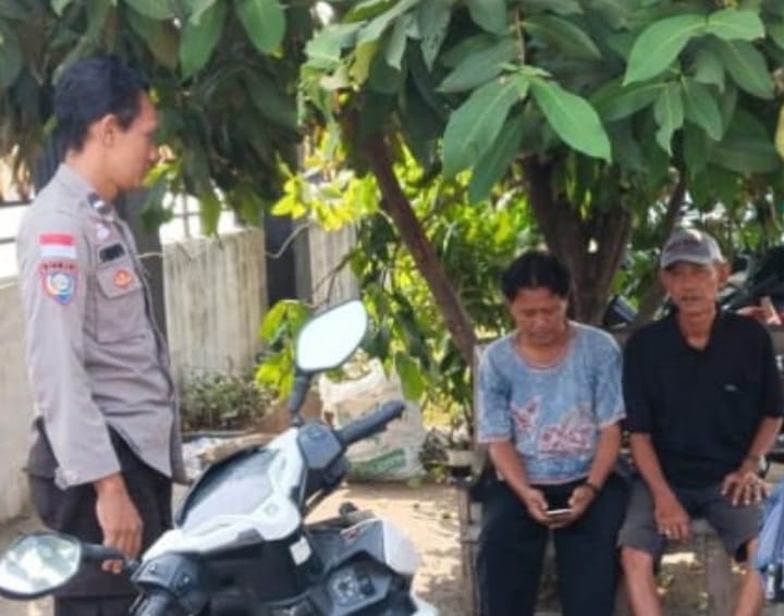 JP – Polres Karawang – Bhabinkamtibmas Desa Jatisari Polsek Jatisari Polres Karawang Aipda Gunanto sosialisasi Program Lapor Pak Kapolres saat sambangi warga desa binaan.