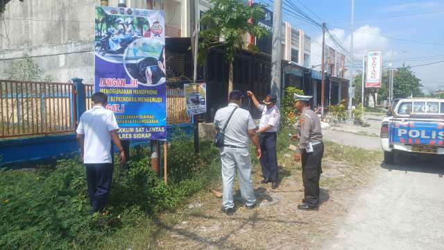 Isi spanduknya sederhana tapi mengena: selalu pakai helm, patuhi batas kecepatan, simpan ponsel saat mengemudi, dan pastikan surat-surat kendaraan lengkap.