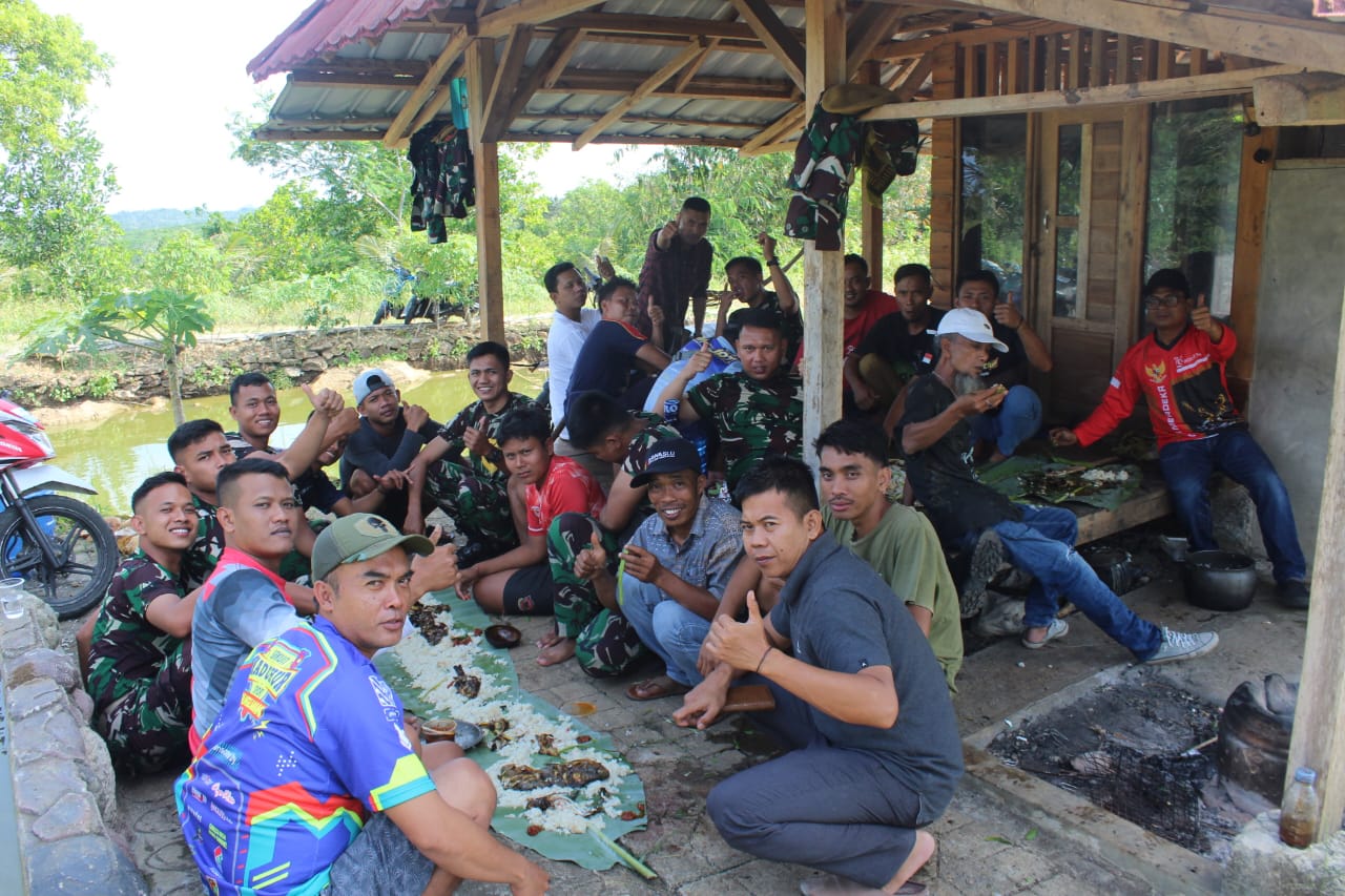 Terlihat suasana tercipta begitu hangat dan penuh keakraban antara Anggota TNI Manunggal Membangun Desa (TMMD) saat makan bersama, tak ada lagi kecanggungan