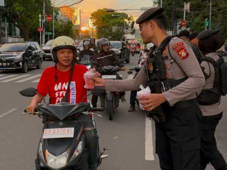 Namun, di tengah hiruk-pikuk perjalanan, ada pemandangan yang berbeda. Sejumlah personel dari Patroli Perintis Presisi Direktorat Samapta Polda Sulawesi Selatan (Sulsel) berdiri di tepi jalan, membawa kantong berisi takjil. Senin (4/3/2025)