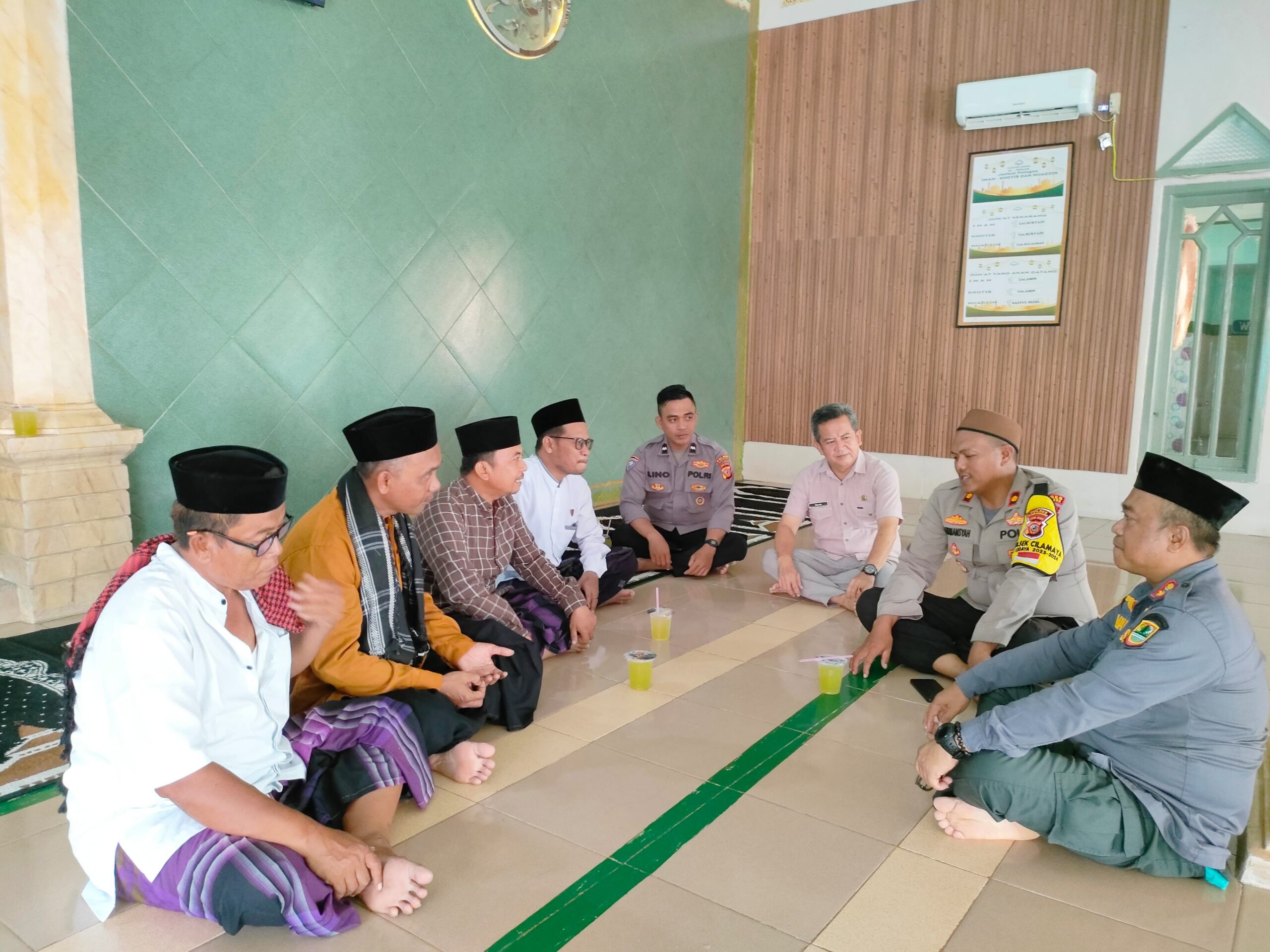 JP – Karawang – Polsek Cilamaya menggelar program Jumat Curhat di Mesjid Al Ikhlas desa dusun Ondang 1 Desa Tegalwaru Kec. Cilamaya Wetan Kab. Karawang, Jumat (11/10/24).