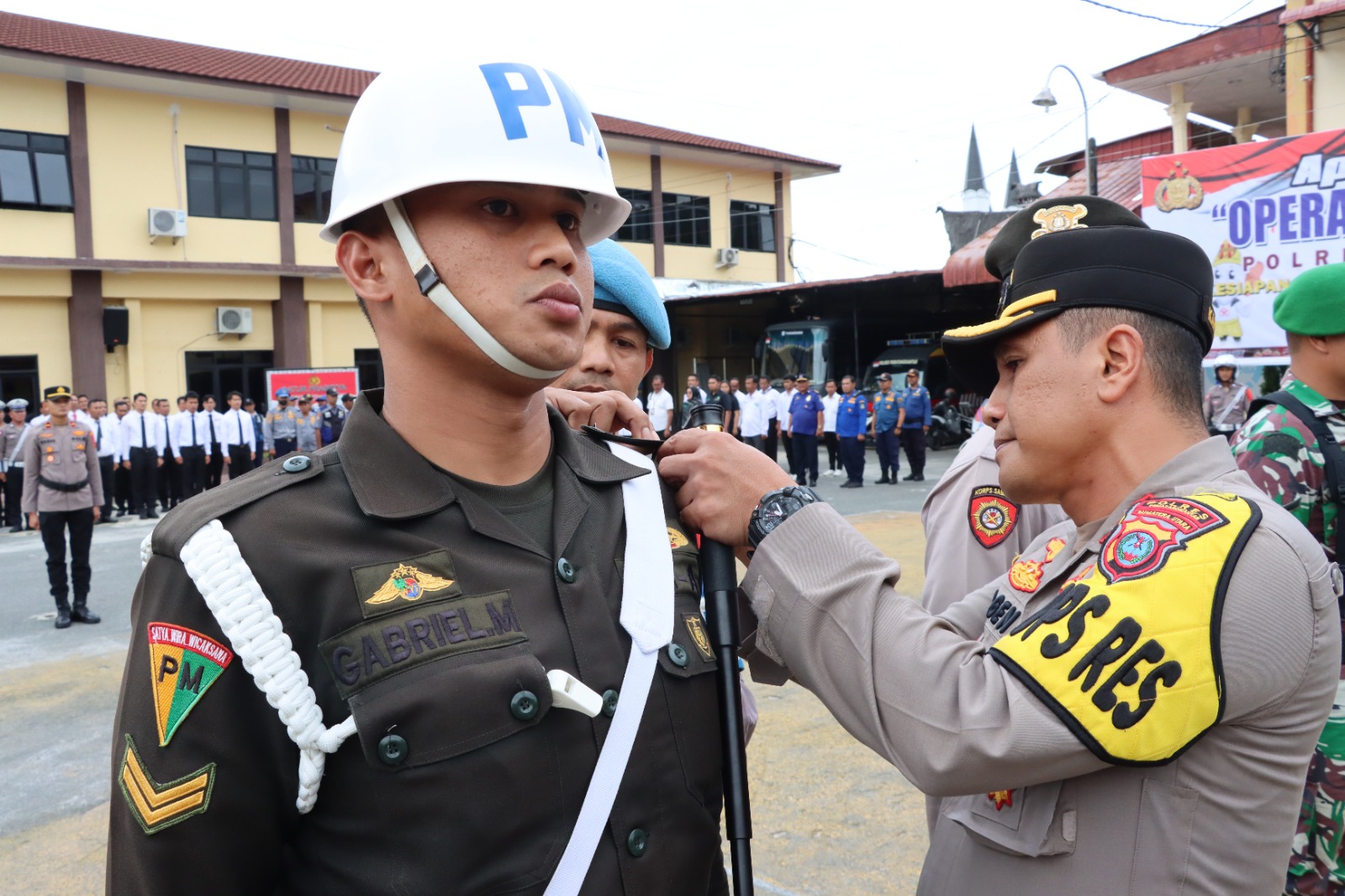 Selanjutnya AKBP Yogen memasang pita tanda Ops Hatra Toba Tahun 2024 kepada perwakilan personil peserta Ops Hatra Toba 2024.