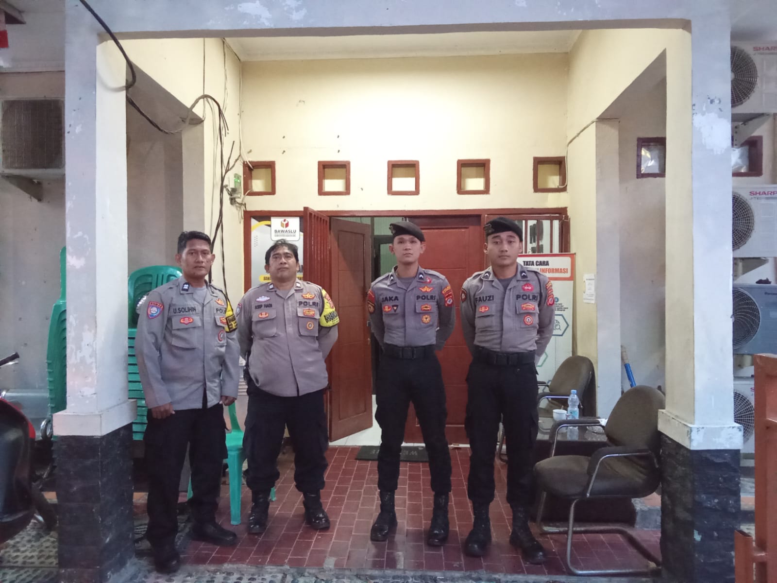 JP Polres Karawang – Padal Polsek Karawang Kota Ipda Dimas Andri Tri beserta anggota lainnya mengecek keamanan di Kantor Bawaslu Kabupaten Karawang, saat melaksanakan patroli prekat, dalam rangka Ops Mantap Praja, Sabtu (02/11/2024)