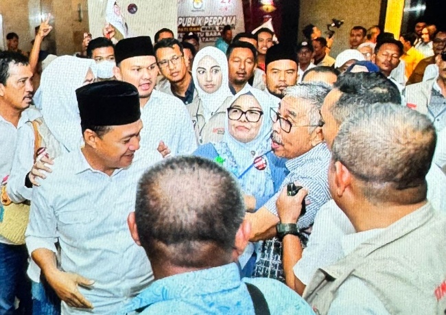 Calon Bupati Zahir Saat keluar dari Ruangan diserang tiba tiba diserang dari belakang oleh seorang lelaki diduga Orang tua wakil Bupati Paslon Nourut 01Usai debat Publik ,