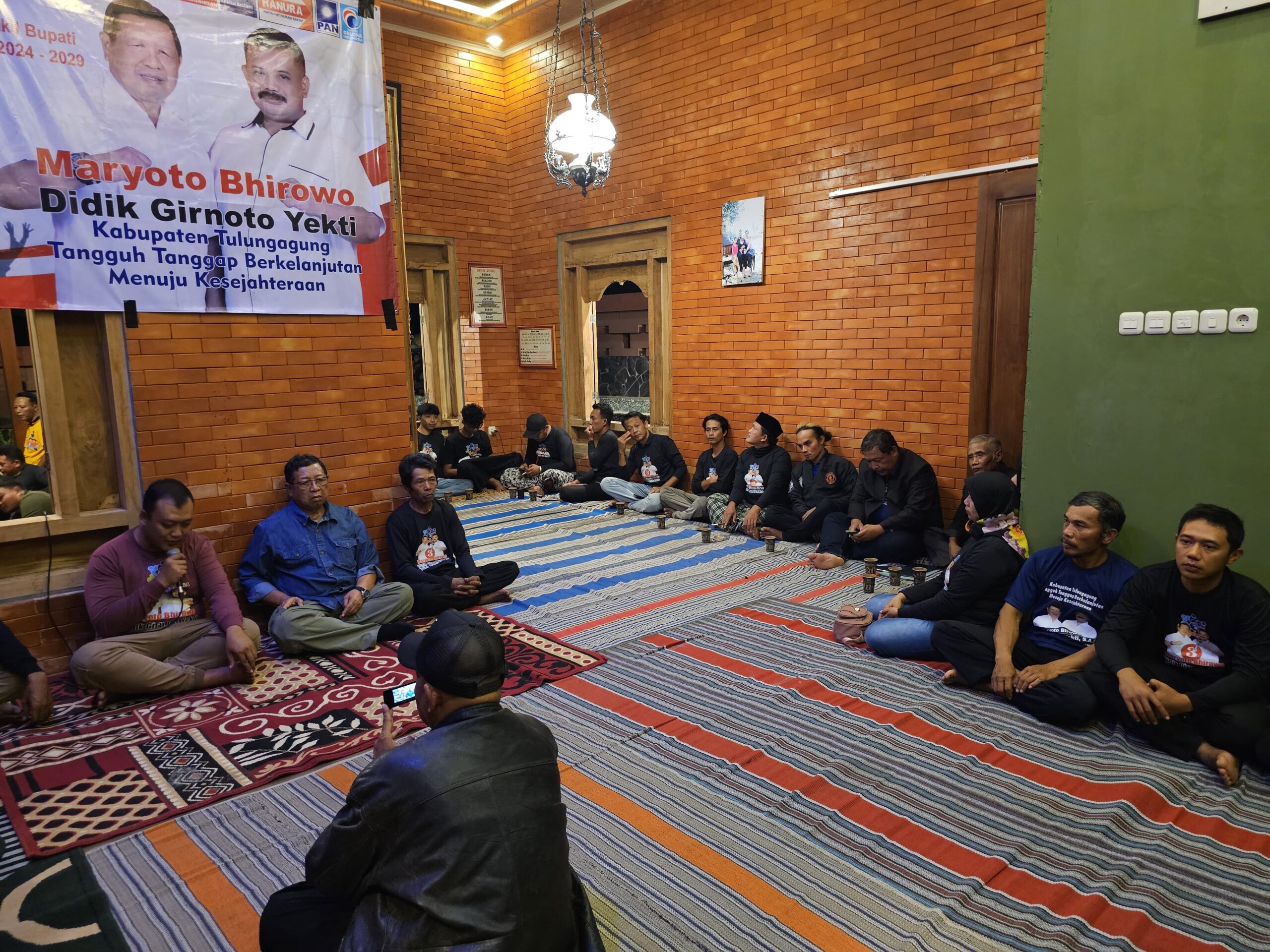 JURNAL POLRI,-TULUNGAGUNG -Pengusaha muda Rahmat Putra Perdana bersama relawan tim Bhinneka Kabupaten Tulungagung mendeklarasikan dukungan untuk calon Bupati dan Wakil Bupati Maryoto Bhirowo – Didik Girnoto Yekti pada Pemilihan Kepala Daerah Kabupaten Tulungagung, Jawa Timur.