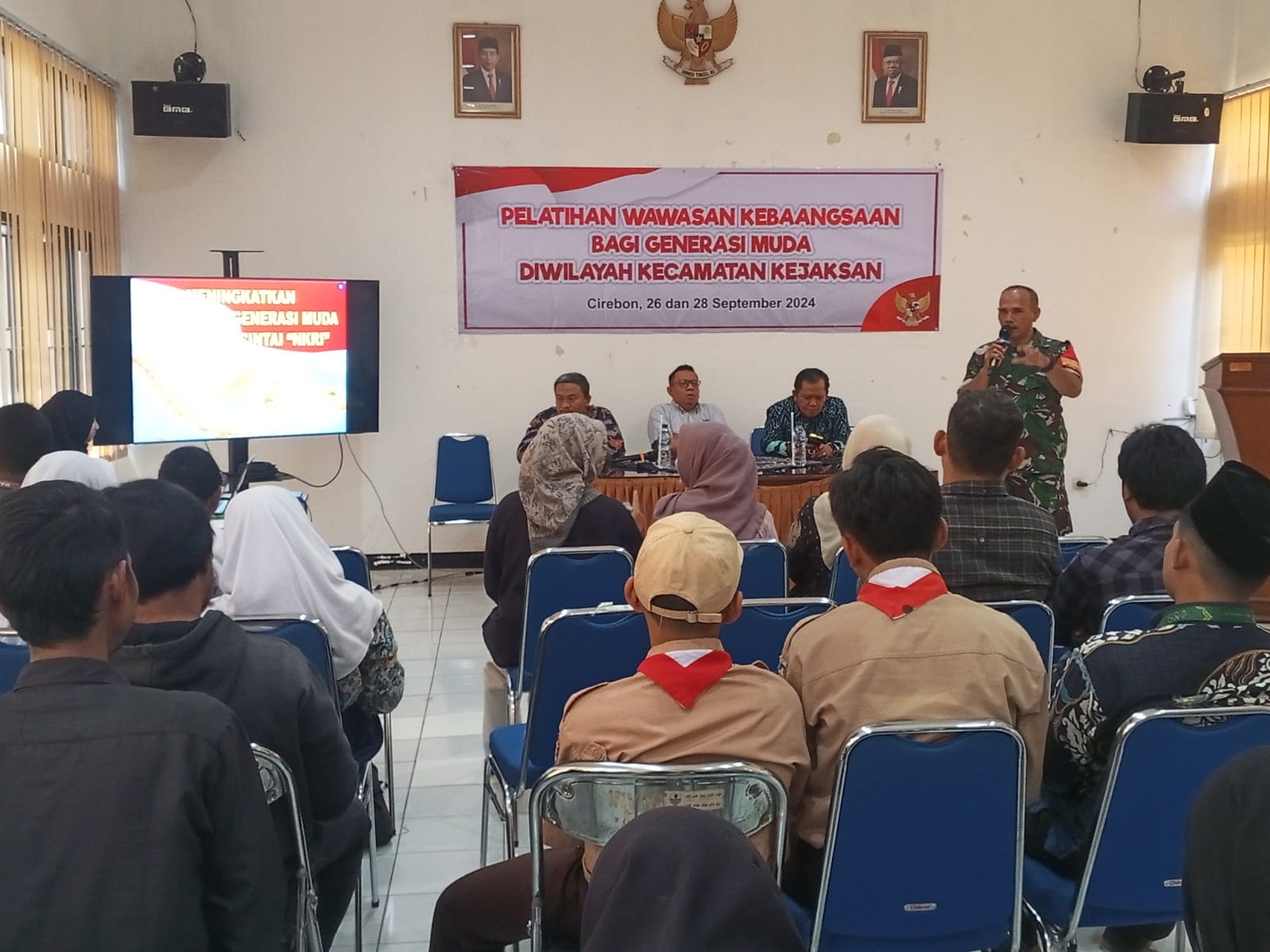 Jurnal Polri.My Id Cirebon.KOTA CIREBON,- Bertempat di Aula Kantor Kec. Kejaksan Jl. Kapten Samadikun RT.01 RW.11/Samadikun Utara Kel.Kesenden Kec.Kejaksan Kota Cirebon, Danramil 1404/Kejaksan Kodim 0614/Kota Cirebon Lettu Inf I.G. Nyoman Sujadi, telah memberikan materi Pelatihan Wawasan Kebangsaan (Wasbang) bagi Generasi muda di Wilayah Kecamatan Kejaksan Kota Cirebon.(Kamis, 26/9/24)
