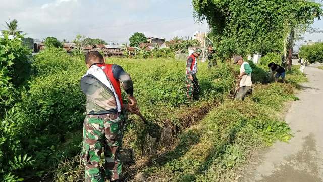 Di bawah komando Batituud Koramil 1420-03/Maritengngae, Pelda Muhammad Yunus, anggota Koramil bersama masyarakat setempat menggelar kerja bakti massal membersihkan parit-parit desa.