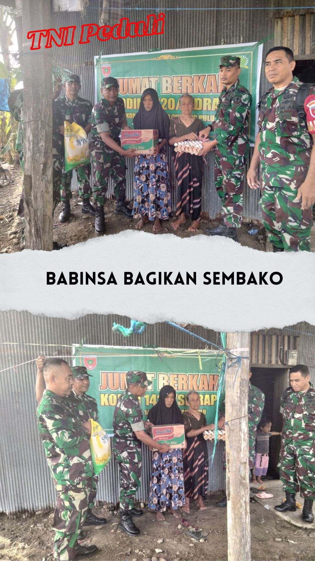 “Kegiatan berbagi dengan sesama ini merupakan bentuk kepedulian TNI, khususnya Babinsa, terhadap warga agar dapat meringankan beban saudara-saudara kita yang benar-benar membutuhkan. Selain itu, kegiatan ini juga merupakan strategi untuk mendekatkan diri dengan masyarakat,” jelas Kapten Czi Benny Gunawan.