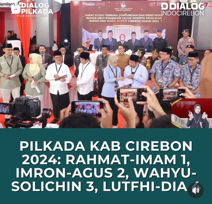 Ketua Komisioner KPU Kabupaten Cirebon, Esya Karnia Puspawati mengatakan saat memberikan sambutan sebelum eksekusi pengundian nomor urut dari ke- 4 Paslon Bupati dan Wakil Bupati Cirebon, yang bertempat di area Gedung KPUD Kabupaten Cirebon yang megah, Jl.Dewi Sartika,Kelurahan Kenanga, Sumber, Kabupaten Cirebon.