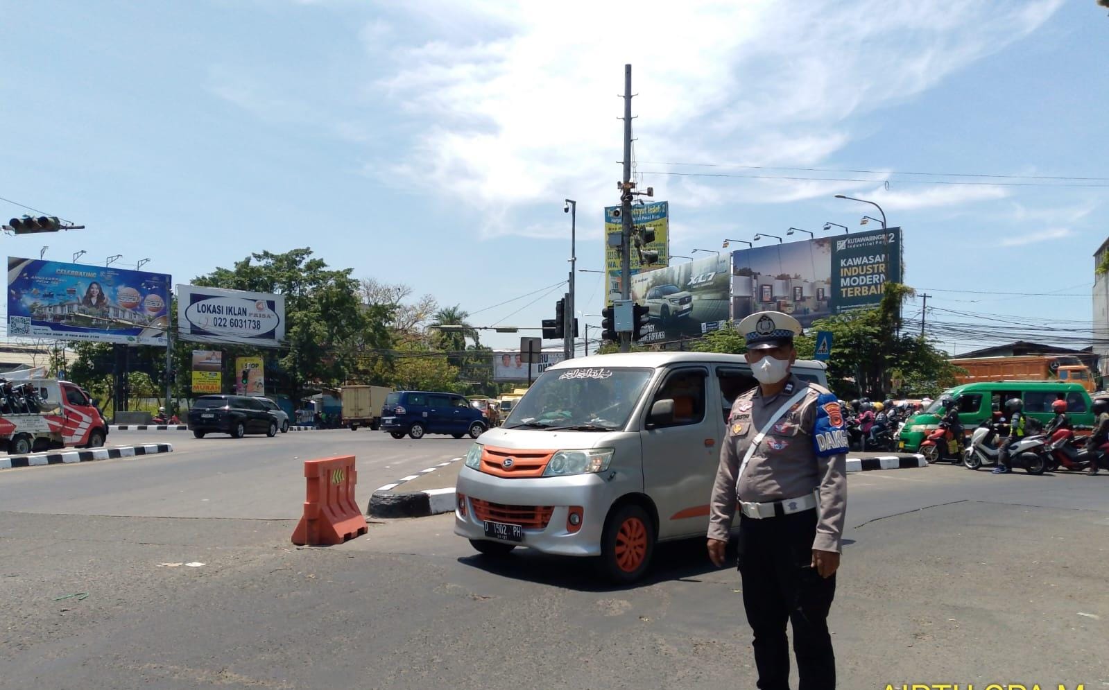Antisipasi kemacetan siang hari, personil unit lantas Polsek Babakan Ciparay melaksanakan pengamanan jalur di titik rawan kemacetan Wilayah Hukum Polsek Babakan Ciparay Polrestabes Bandung.
