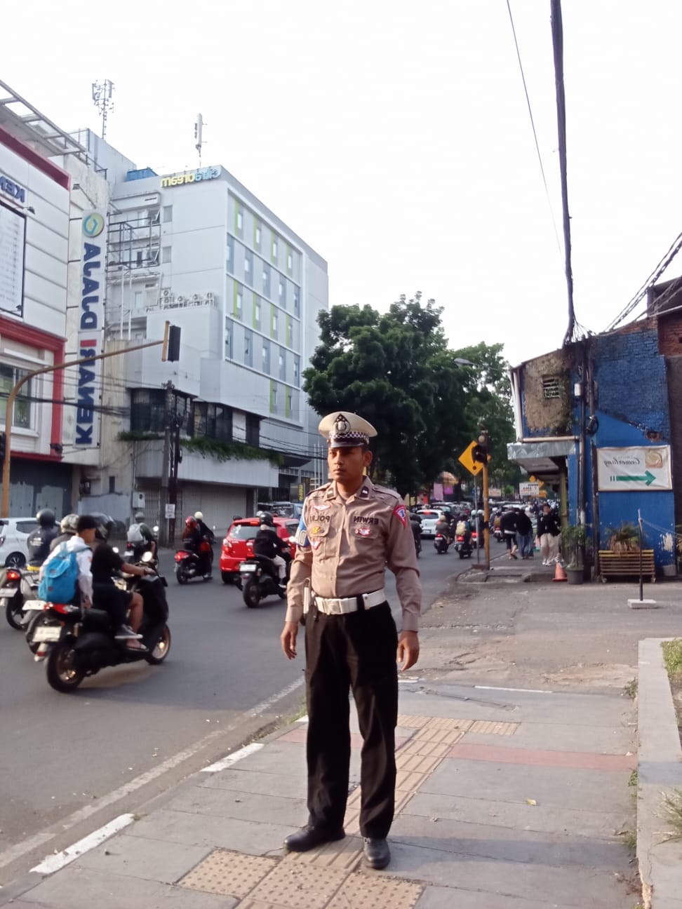 Unit Lantas Polsek Cicendo Polrestabes Bandung Laksanakan Pengaturan lalu lintas di Pos Cemerlang untuk Pelayanan Masyarakat