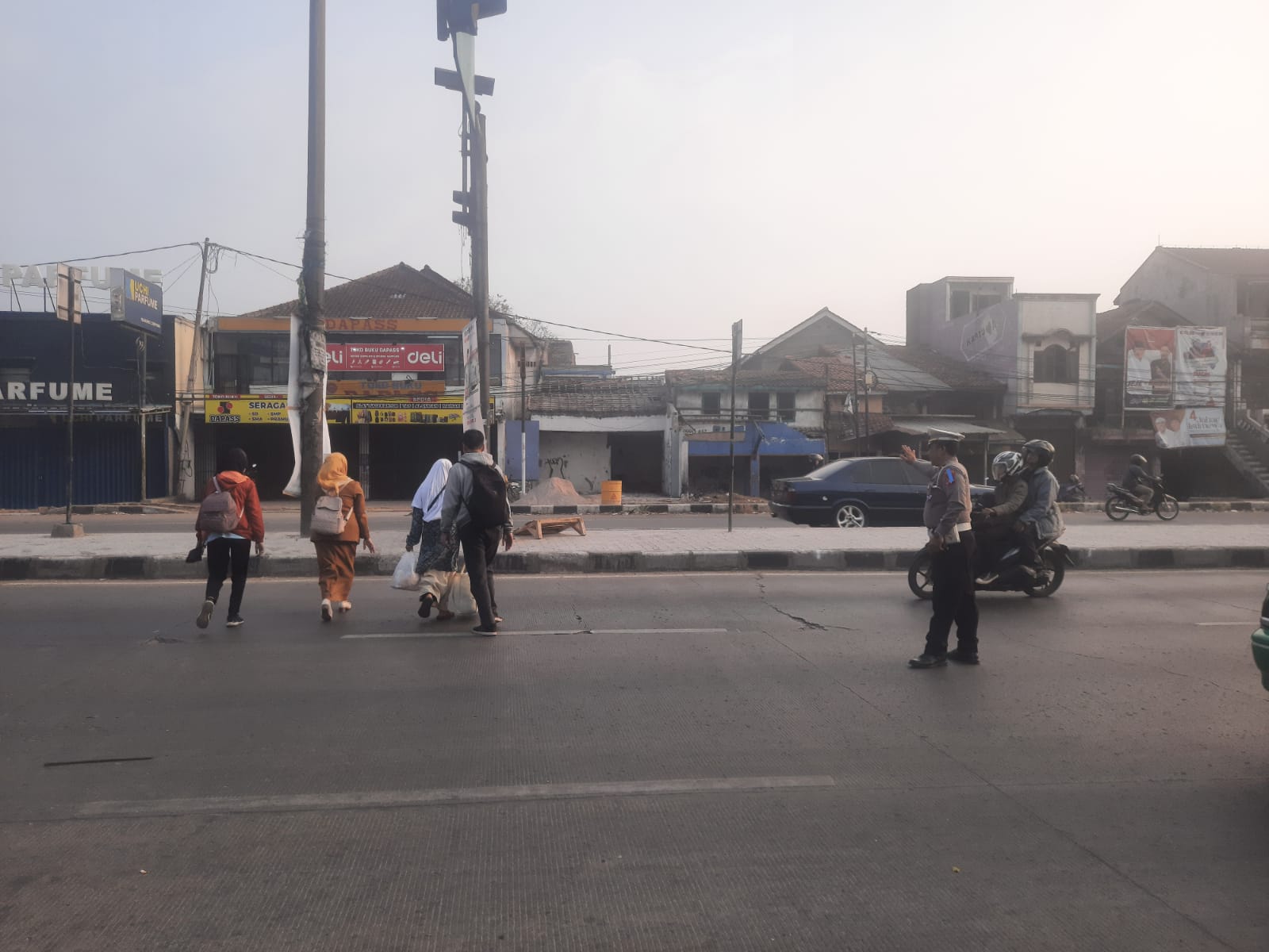 Unit Lantas Polsek Rancaekek pengaturan lalulintas serta bantu warga penyebranagan jalan cegah laka lantas serta pastikan kamseltibcar lantas