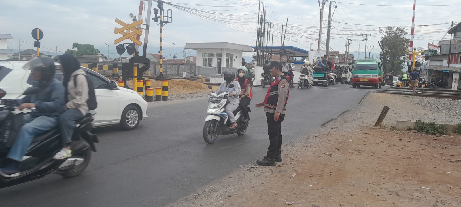 JURNALPOLRI.COM, Rancaekek, Personil Unit Samapta Polsek Rancaekek Polresta Bandung pelayanan pagi urai kepadatan lalu lintas di sekitar Pintu Pelintasan Kereta Api. Jumat 30/08/2024