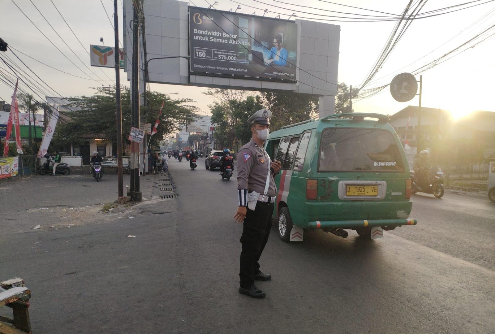 Untuk kelancaran lalulintas di pagi hari, anggota unit lantas Polsek Babakan Ciparay laksanakan pengaturan lalin