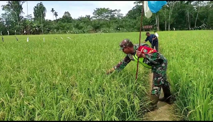 JURNAL POLRI.COM-ACEH TAMIANG-ACEH-Bintara Pembina Desa ( Babinsa ) Koramil 05/Tamiang Hulu Serda Afriyanto melaksanakan kegiatan Ketahanan Pangan pendampingan membantu petani mengusir hama burung pipit di lahan sawah Bapak Asngari, Kelompok Tani Sumber Jaya, di Desa Babo, Kecamatan Bandar pusaka, Kabupaten Aceh Tamiang. Sabtu (02/11/2024)